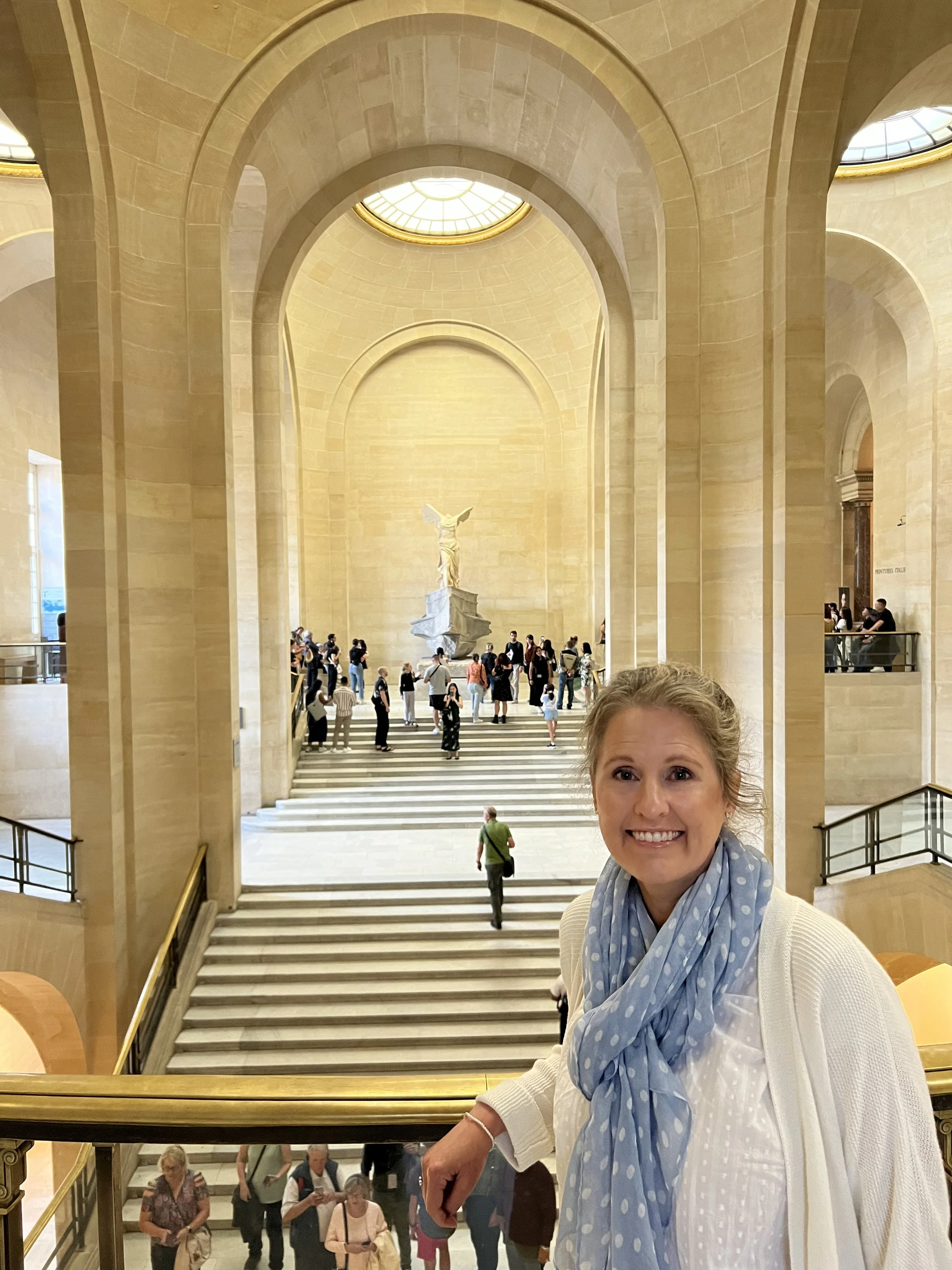 We checked out of our hotel room, had them hold our two bags, and then took the Metro to the Louvre. You exit the train in an underground mall that leads directly to the entrance for pre-purchased ticket holders—pretty darn convenient.