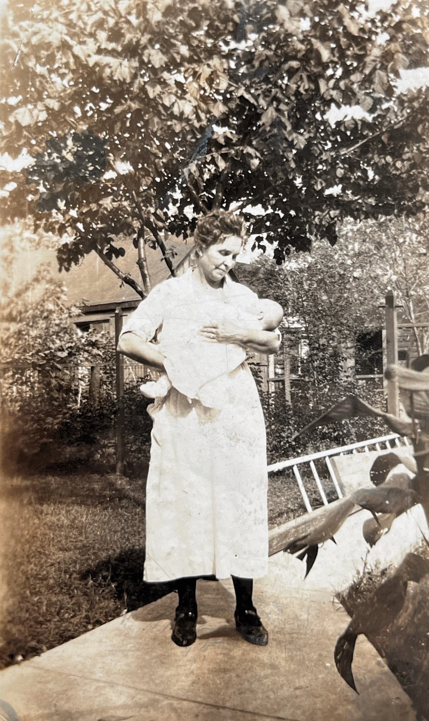 2. Charles and Augusta had four daughters: Mildred,, Hertha, Lydia, and Eleanor. They welcomed Mildred Neubauer (Jim’s mother) into the world on January 19, 1907, in Chicago, Illinois. Pictured here is Augusta holding a baby, though the child’s identity is not known.
