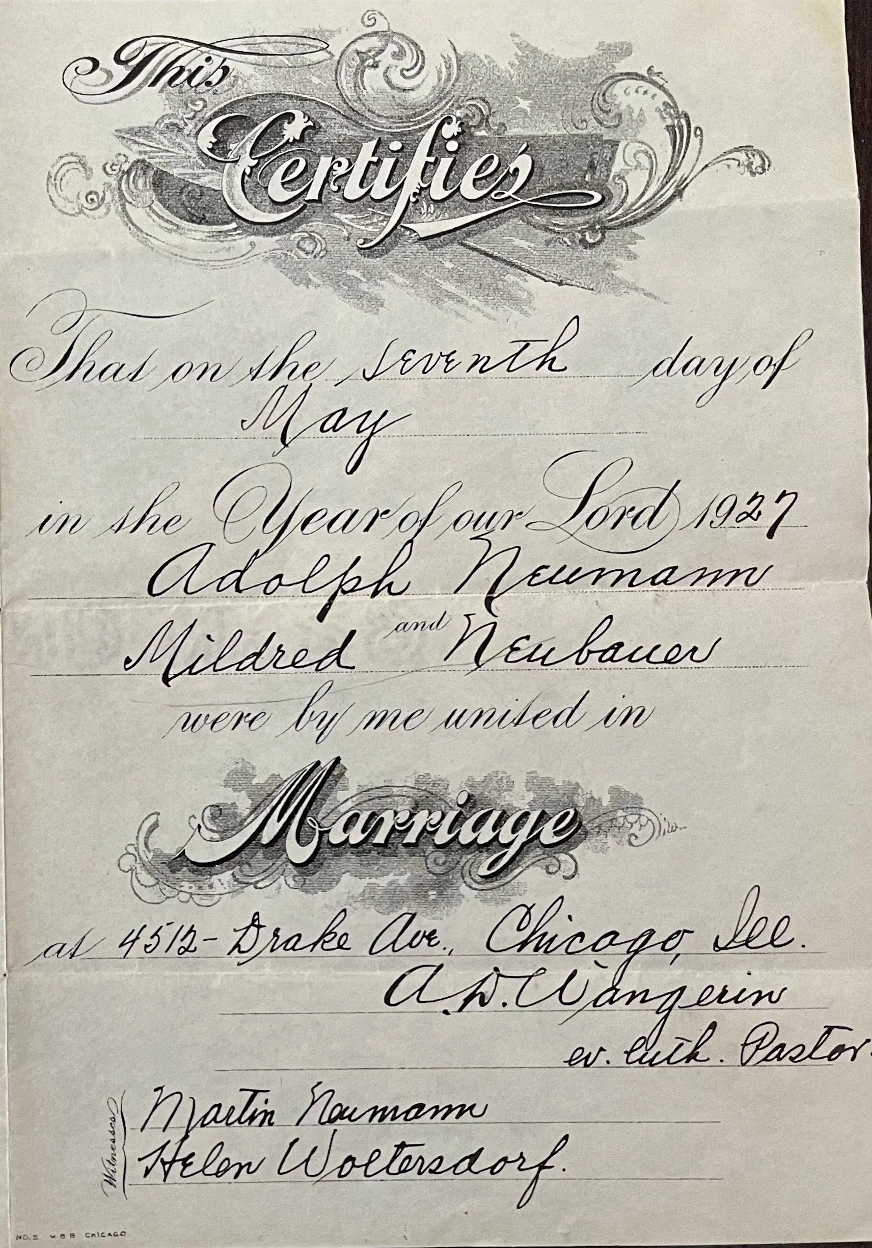 19. Both the Neubauer and Neumann families attended Tabor Lutheran Church. From this we can safely presume that Adolph and Mildred met at the church.