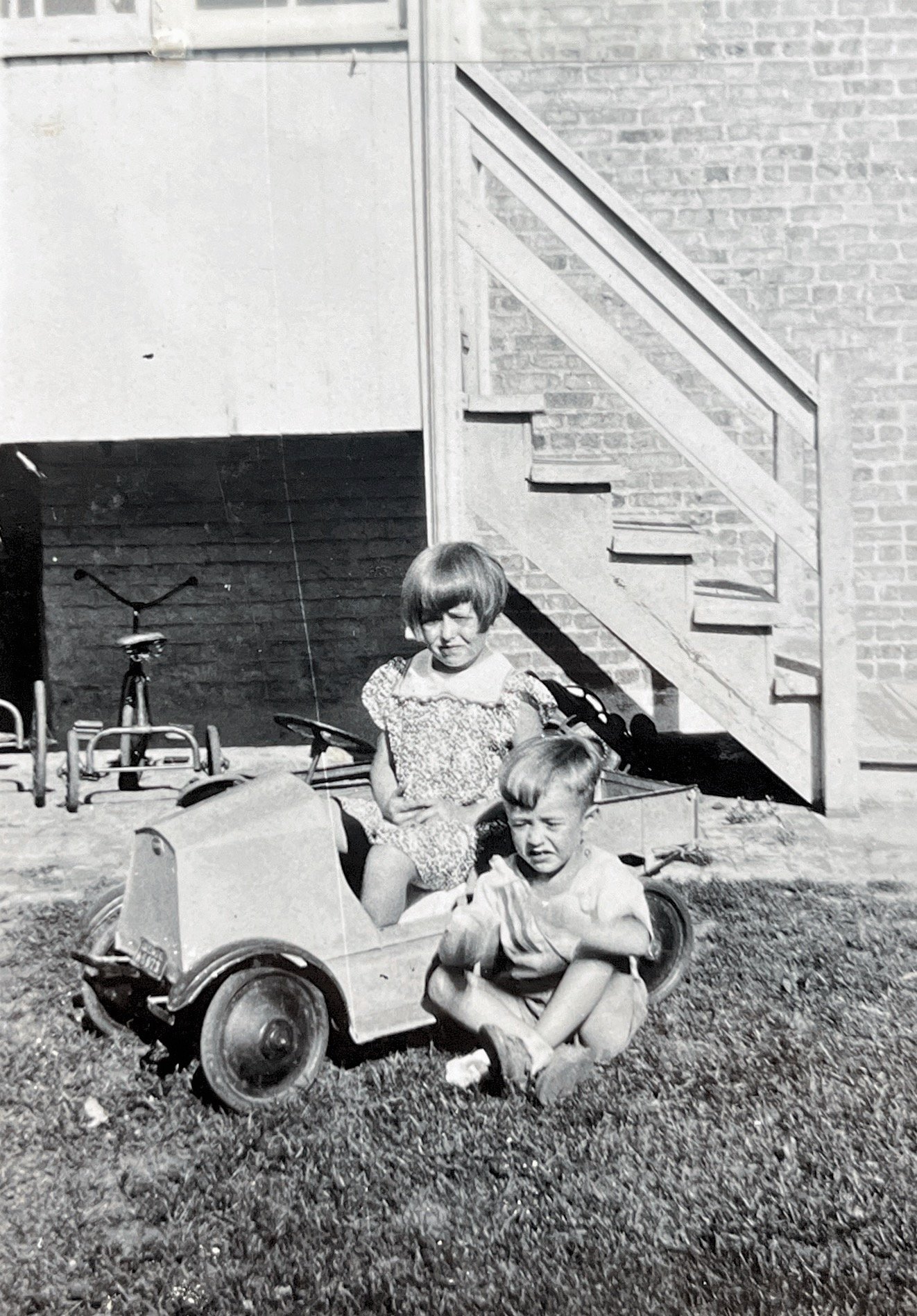 29. A young Jean and Bob playing in the yard several years before their young brother Jim was to be born. The house is unknown, though it will be seen again in photos once their little brother Jimmy comes along.
