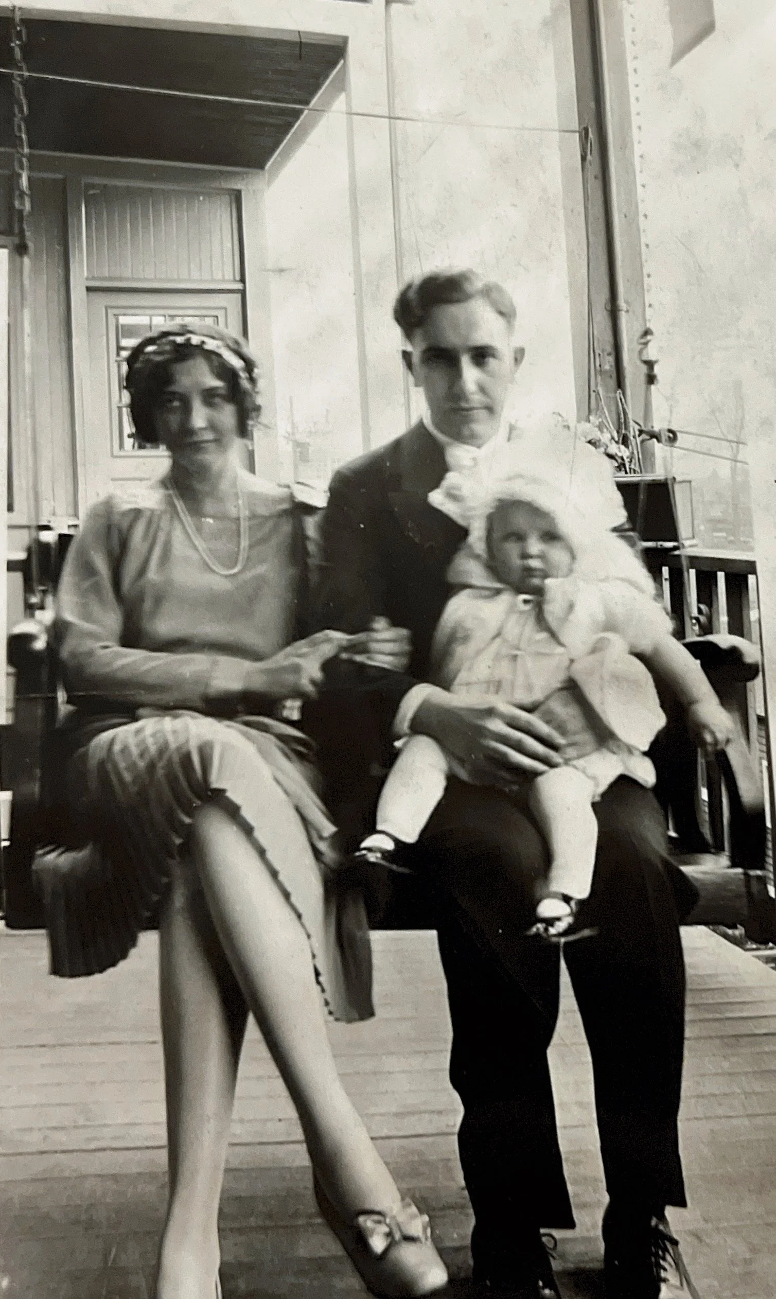 28. When the doctor was delayed by winter weather, Mildred gave birth to her and Adolph’s first child: Jean (Simpson) on February 24, 1928. Mildred’s sister Lydia assisted her with the delivery. Unsurprisingly, Lydia became Jean’s favorite aunt. This was while Adolph and Mildred lived in the upstairs half of the Neubauer house. Adolph and Mildred holding baby Jean. Jim would not be born for 12 years.
