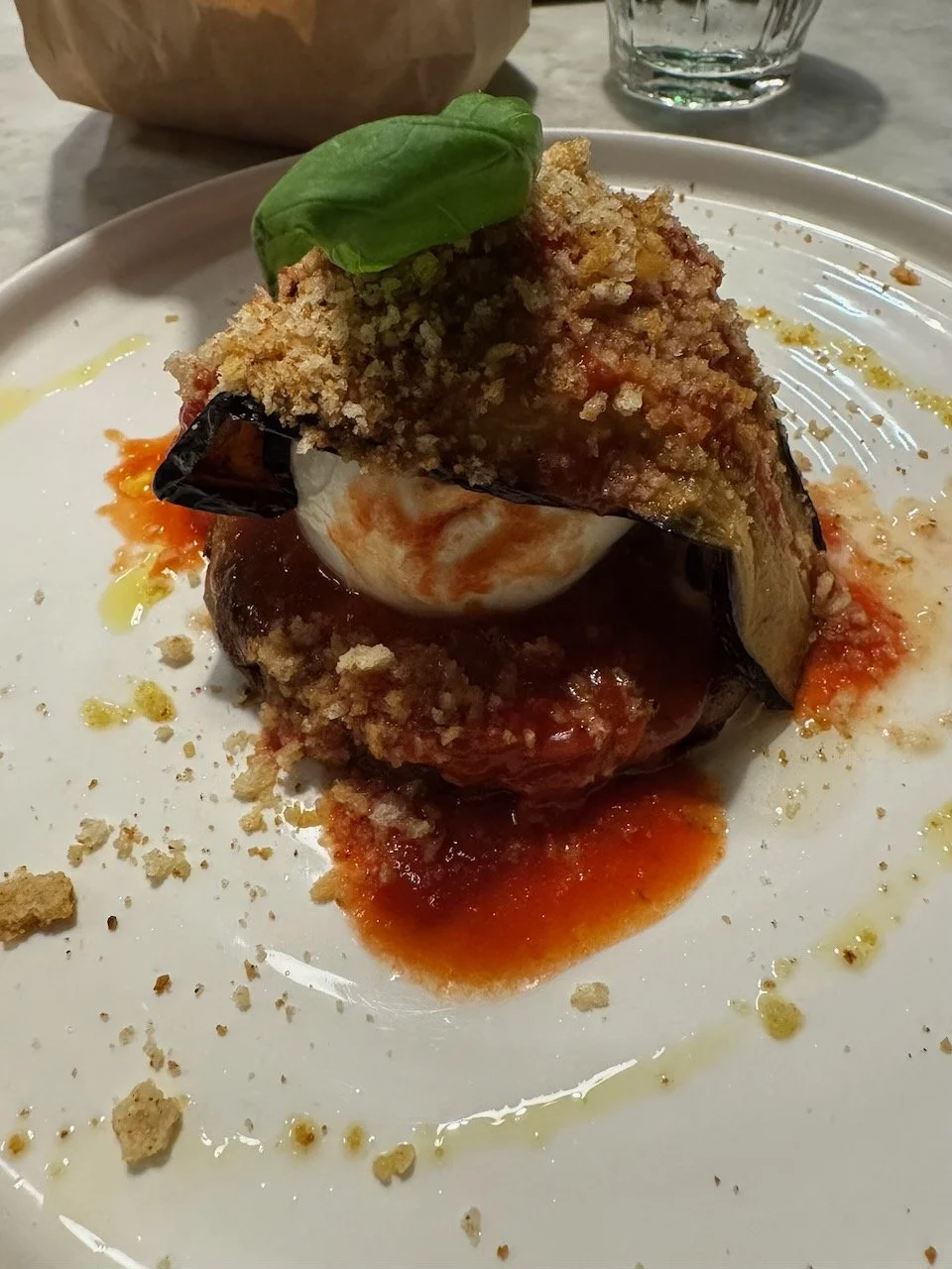 After 23,600+ steps and 11 miles, we deserved a great dinner at Osteria Nunziatina. For our antipasti we had "half a mozzarella and eggplant pizza" - bread crust with fennel seeds, with mozzarella, San Marzano tomatoes, and fried eggplant. A real treat!