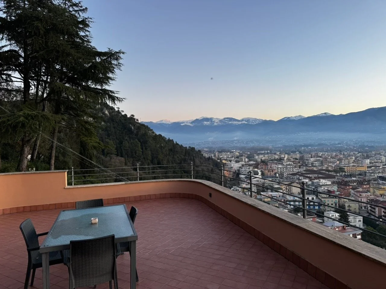 From our (unused) balcony, we could now see a dusting of snow on the mountains to the northeast.
