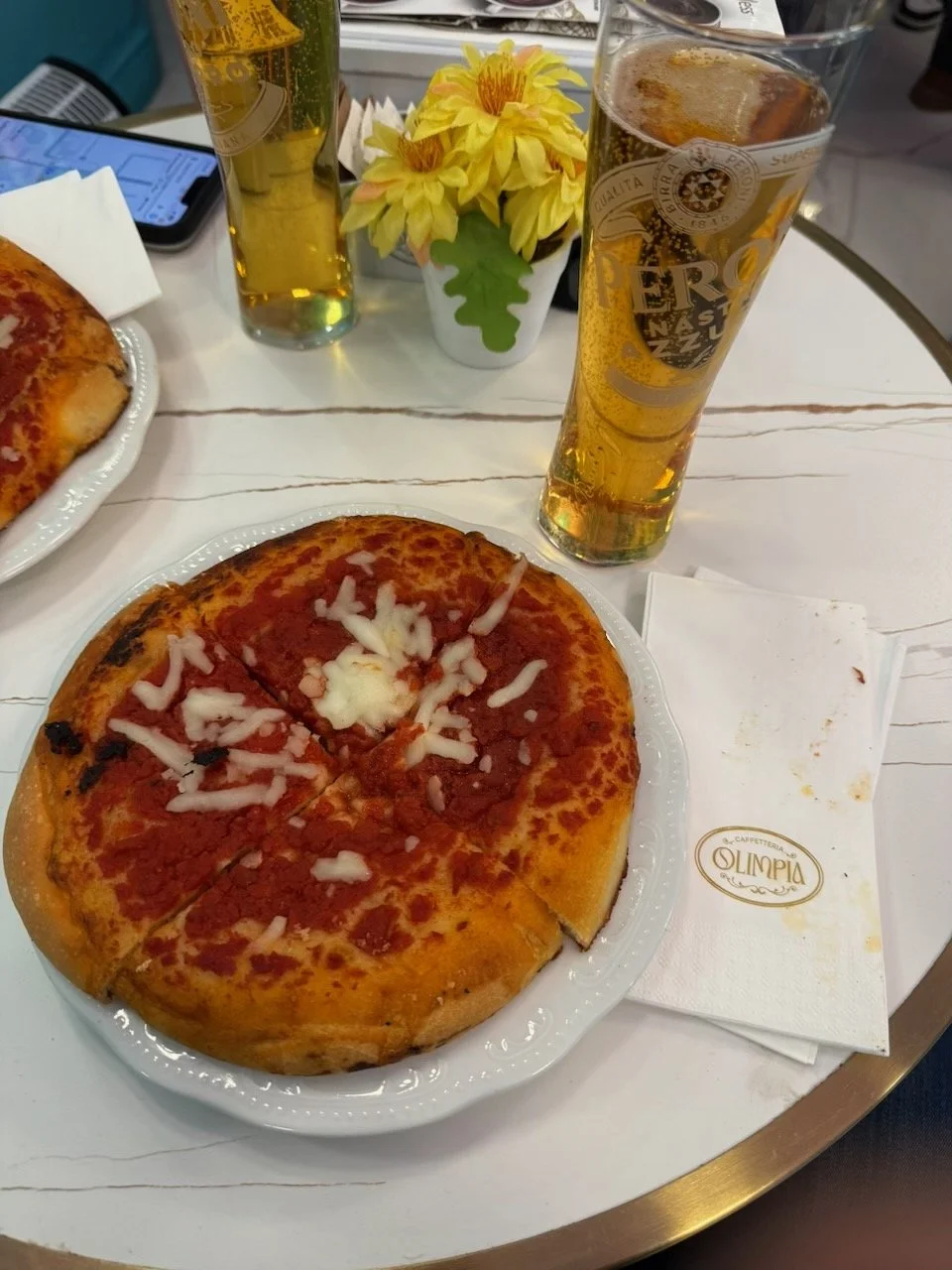 The trip to Caserta was a quick 1:15. A short walk later we found ourselves checking in at Hotel dei Cavalieri Caserta—La Reggie (Knights of the Royal Palace Hotel). Afterward we crossed Piazza Luigi Vanvitelli and walked into Caffè Italia for this rather uninspired focaccia pizza.