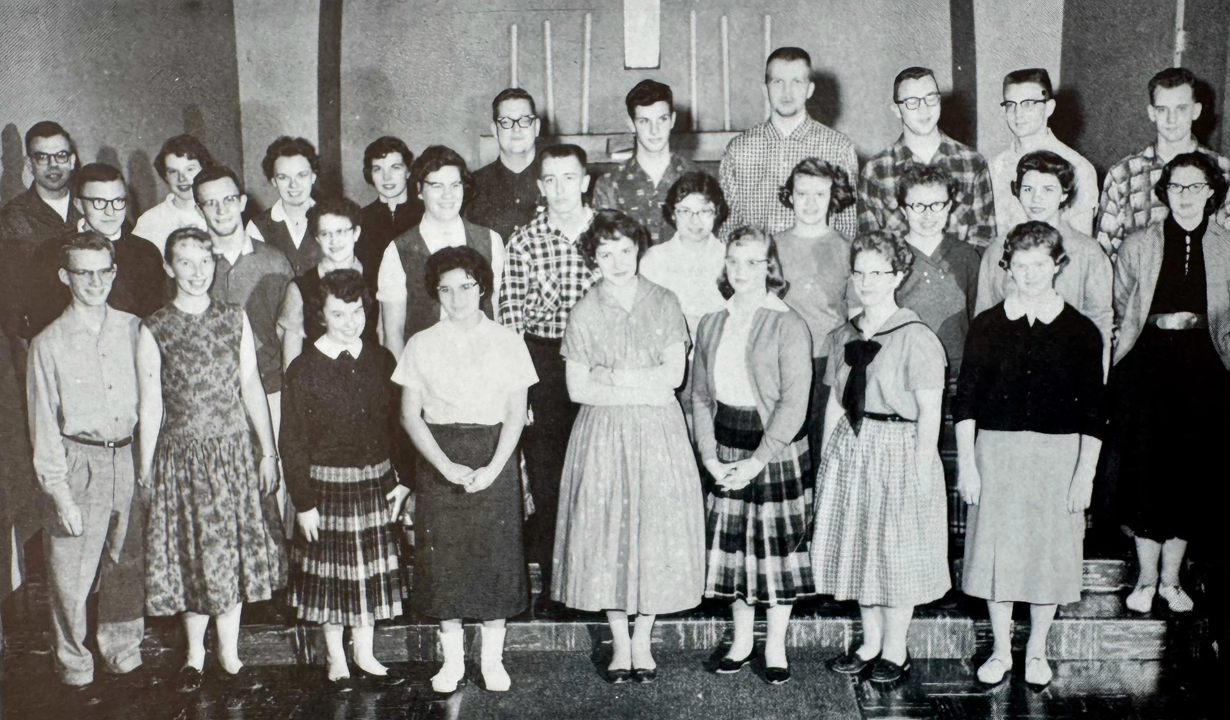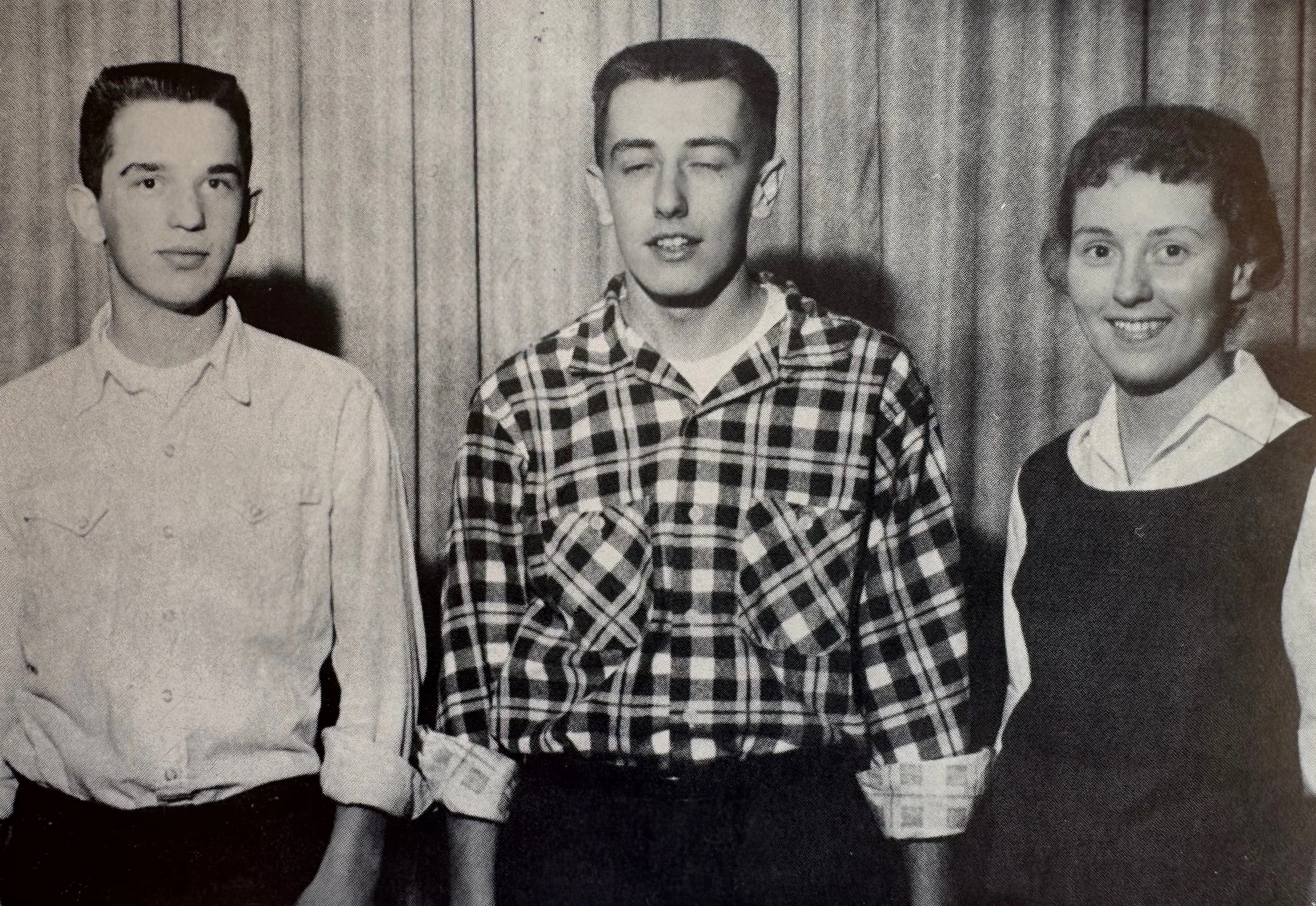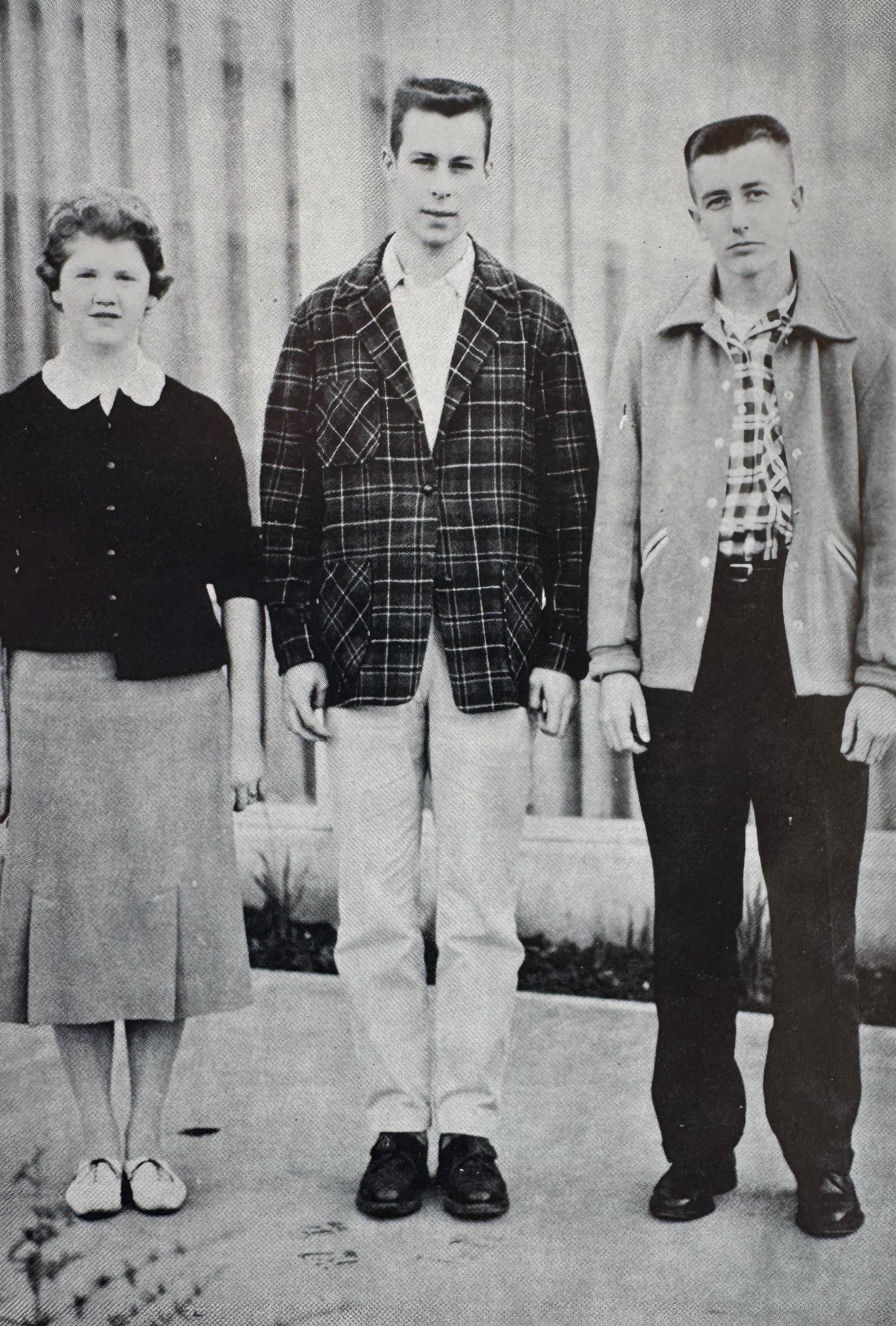 1. Circa 1957, Bob had a vicarage in Sherwood, a small city about 30 minutes southwest of Portland. In this context, being a vicar meant Bob was a pastor-in-training and Sherwood a temporary assignment while he gained experience. In summer 1957(?), Jim and his parents went on vacation to Glacier National Park. On their return trip, they visited both Bob and the campus at Concordia College in Portland. Jim loved the location and decided to apply. The campus combined a high school with a two-year college. Jim thrived while earning his two-year degree from 1957-59. Here he is (right) pictured as Vice President for the graduating class of 1959.