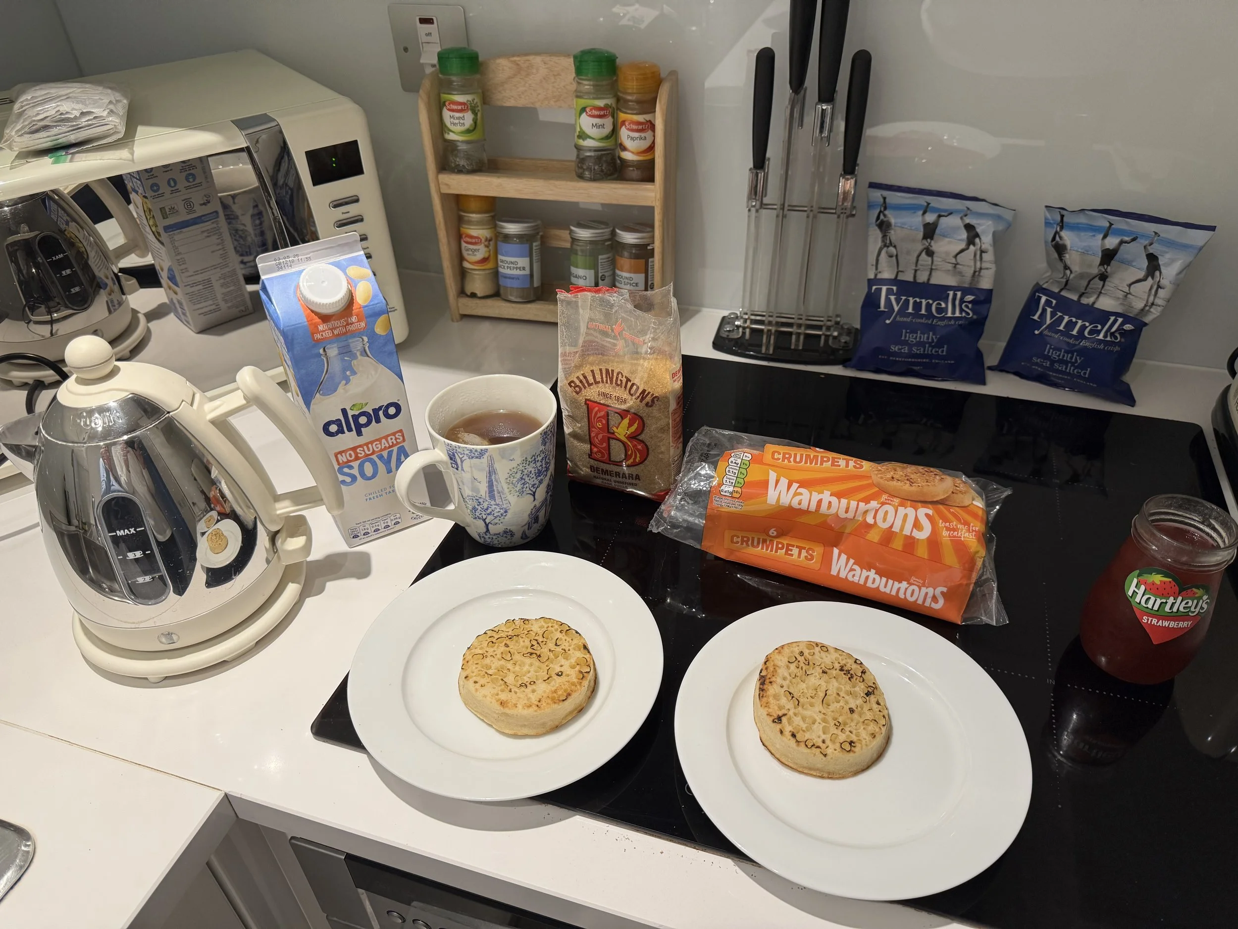 Wednesday morning and we were back in hog heaven: Warburton’s crumpets and Billington’s sugar for our tea—exceptional as always!