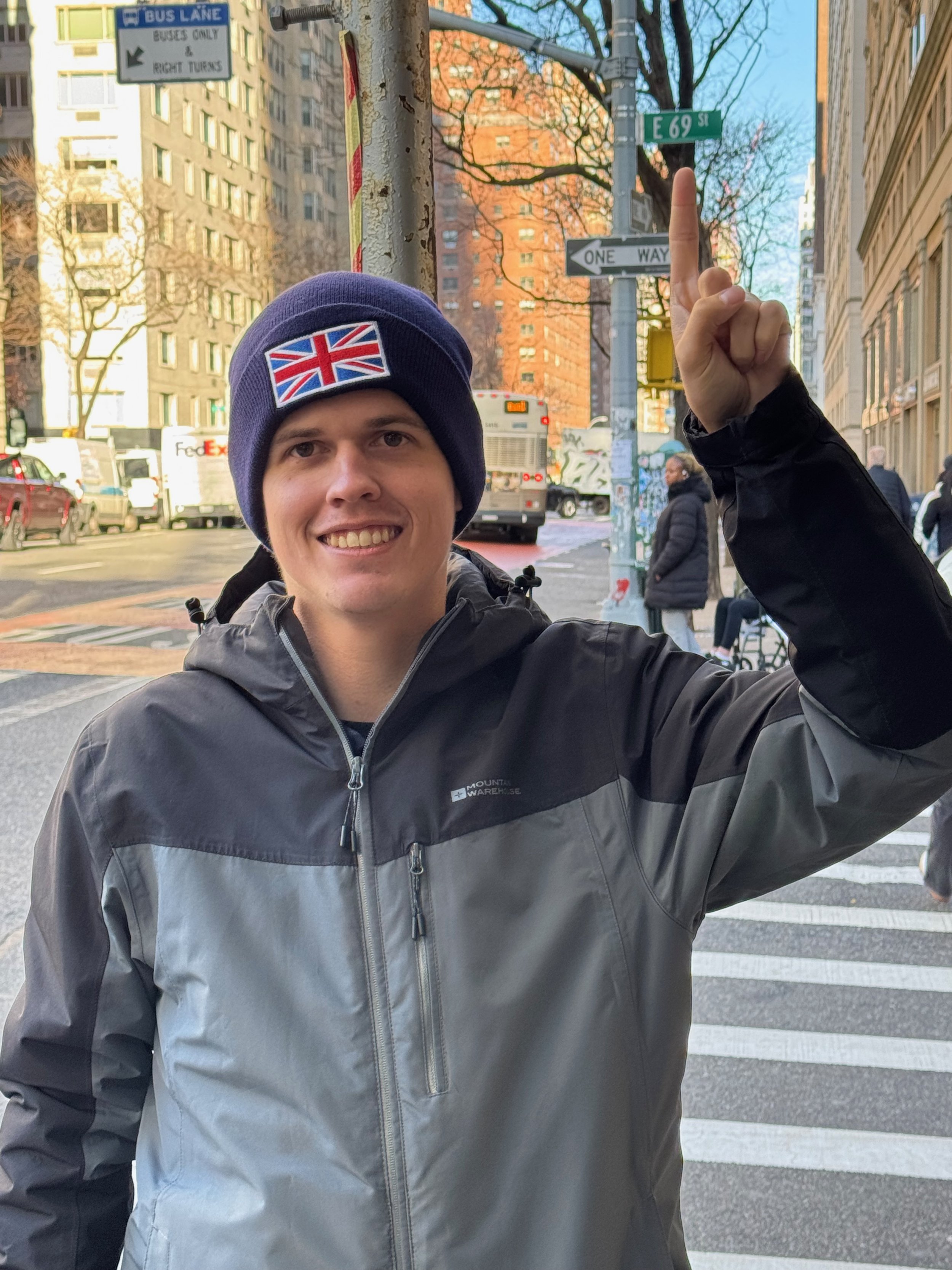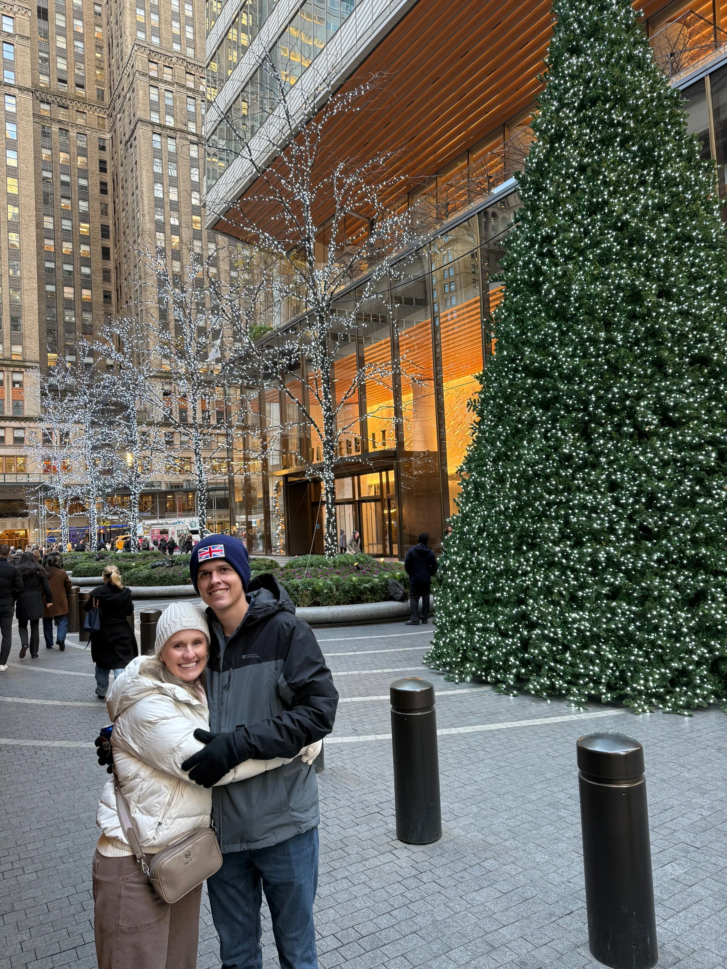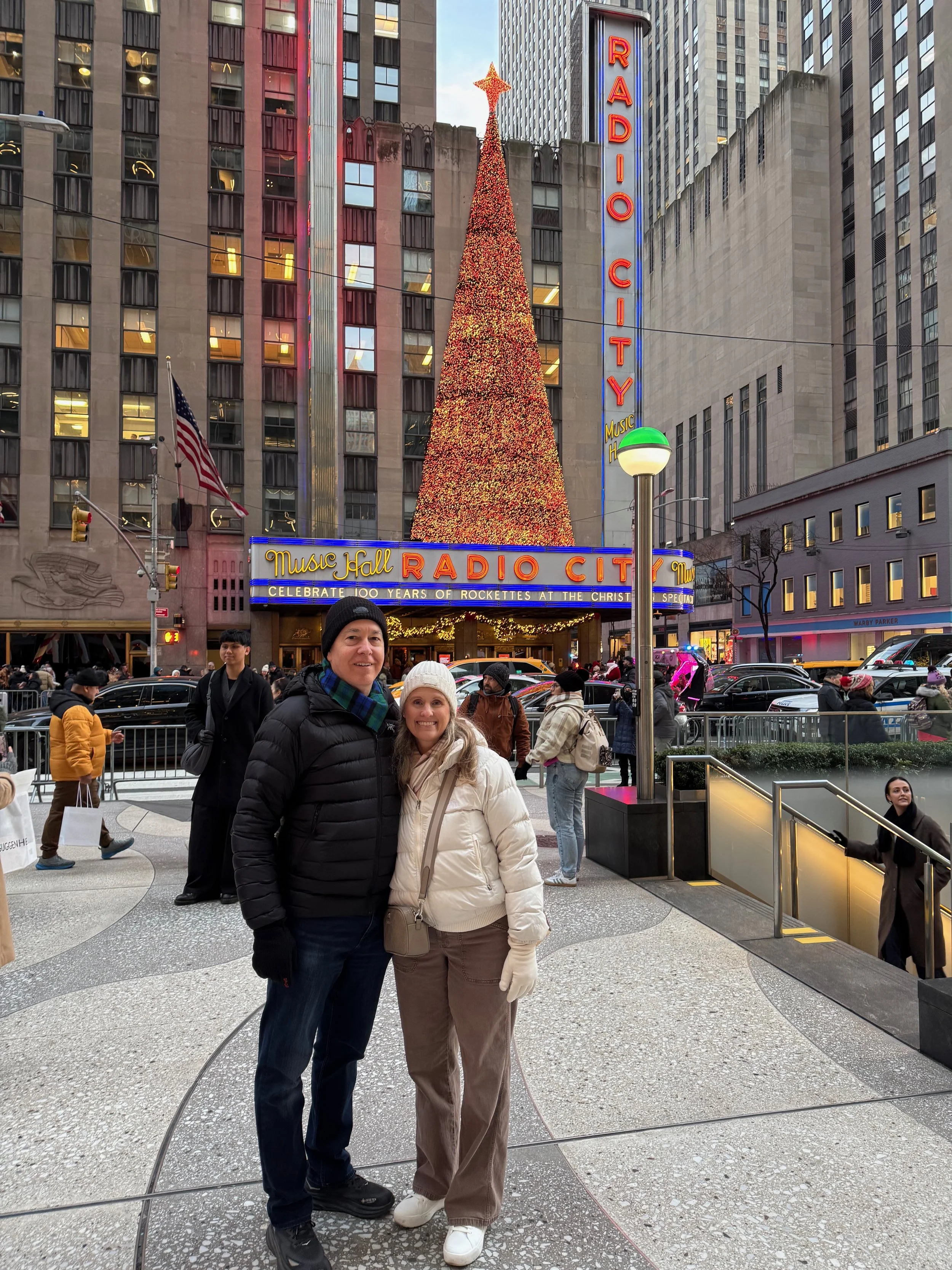 In front of Radio City Music Hall while Will shops inside the MLB Flagship Store.