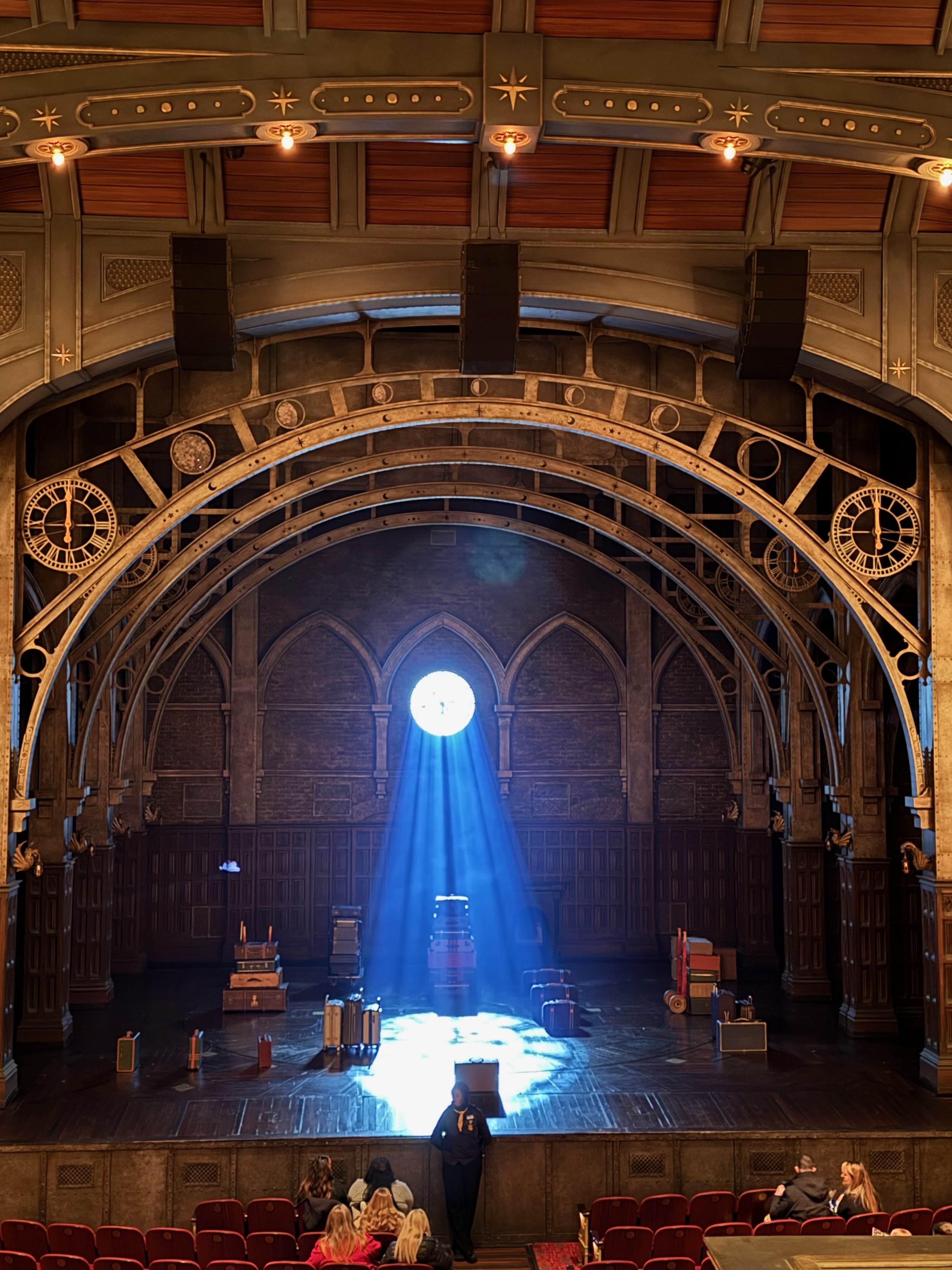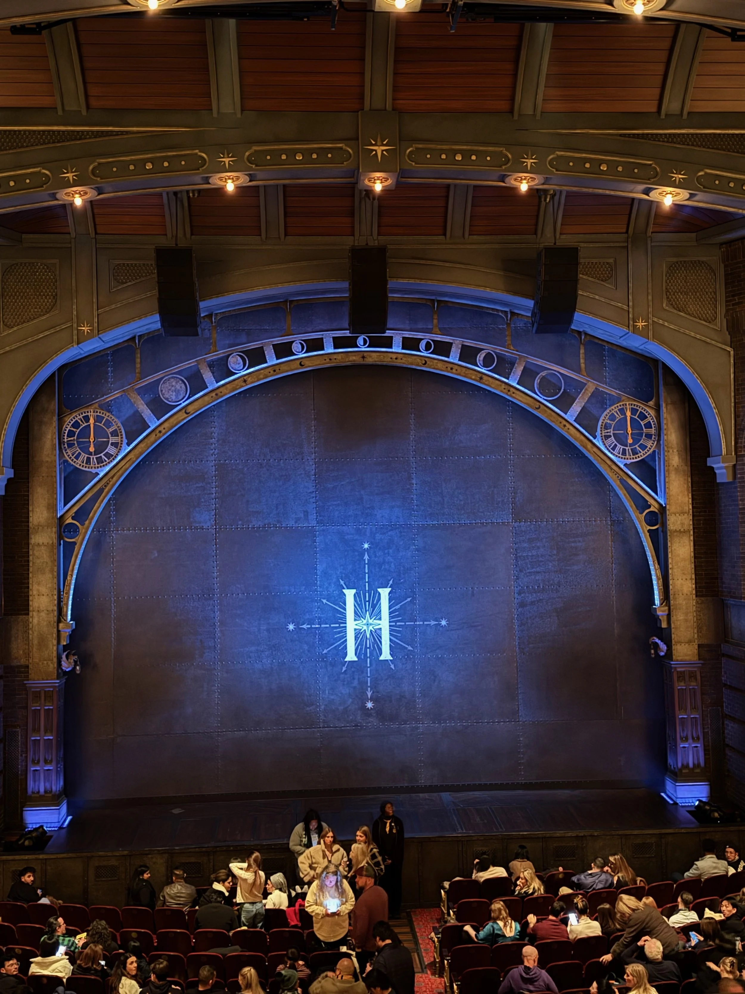 The Lyric Theatre underwent a massive renovation for the play including bespoke carpets, wallpaper, ceiling, etc. The carpets feature a H motif for Hogwarts, surrounded by a Gryffindor sword, Ravenclaw quill, Syltherin venom or pure blood, and Hufflepuff leaf.