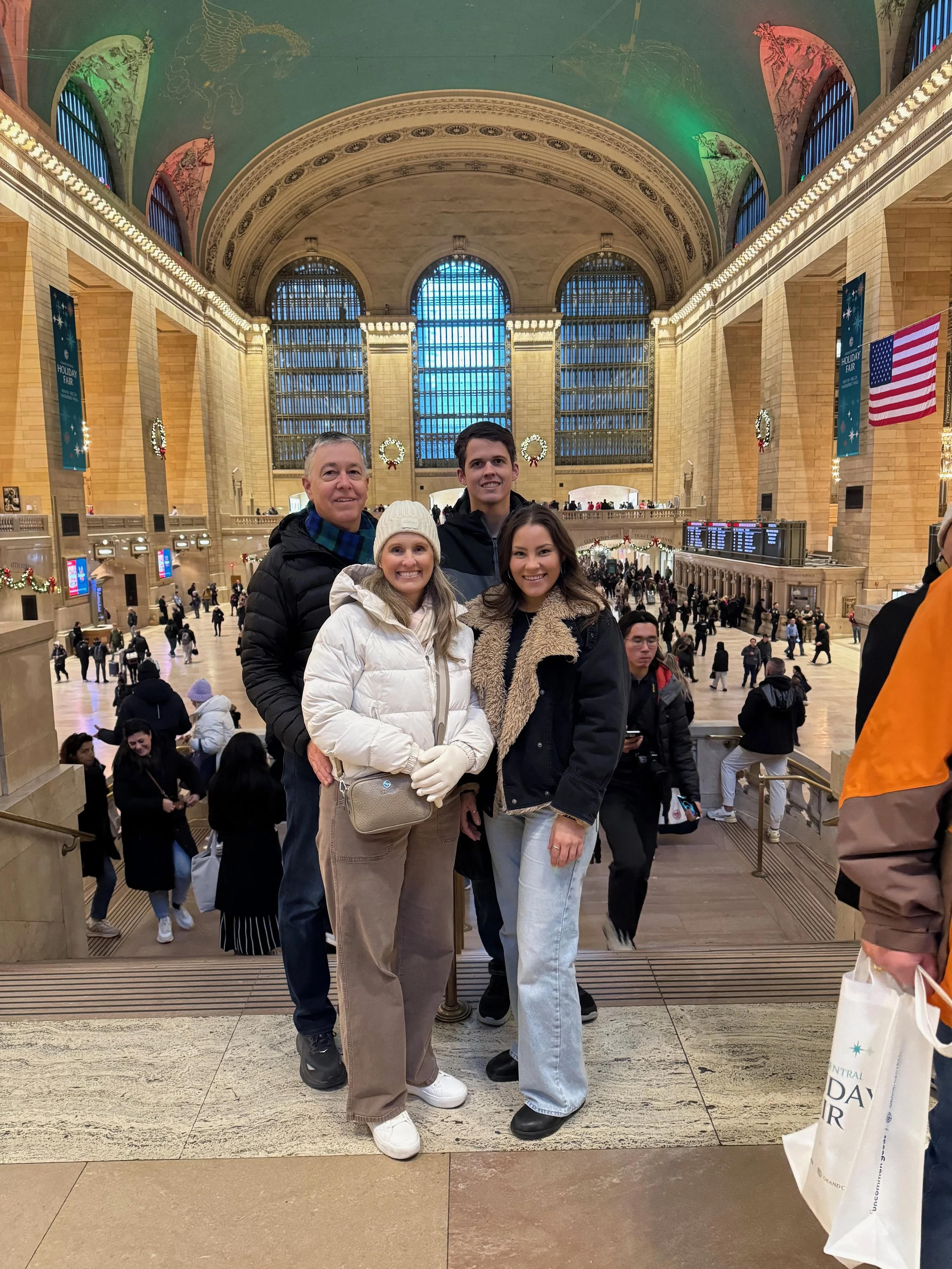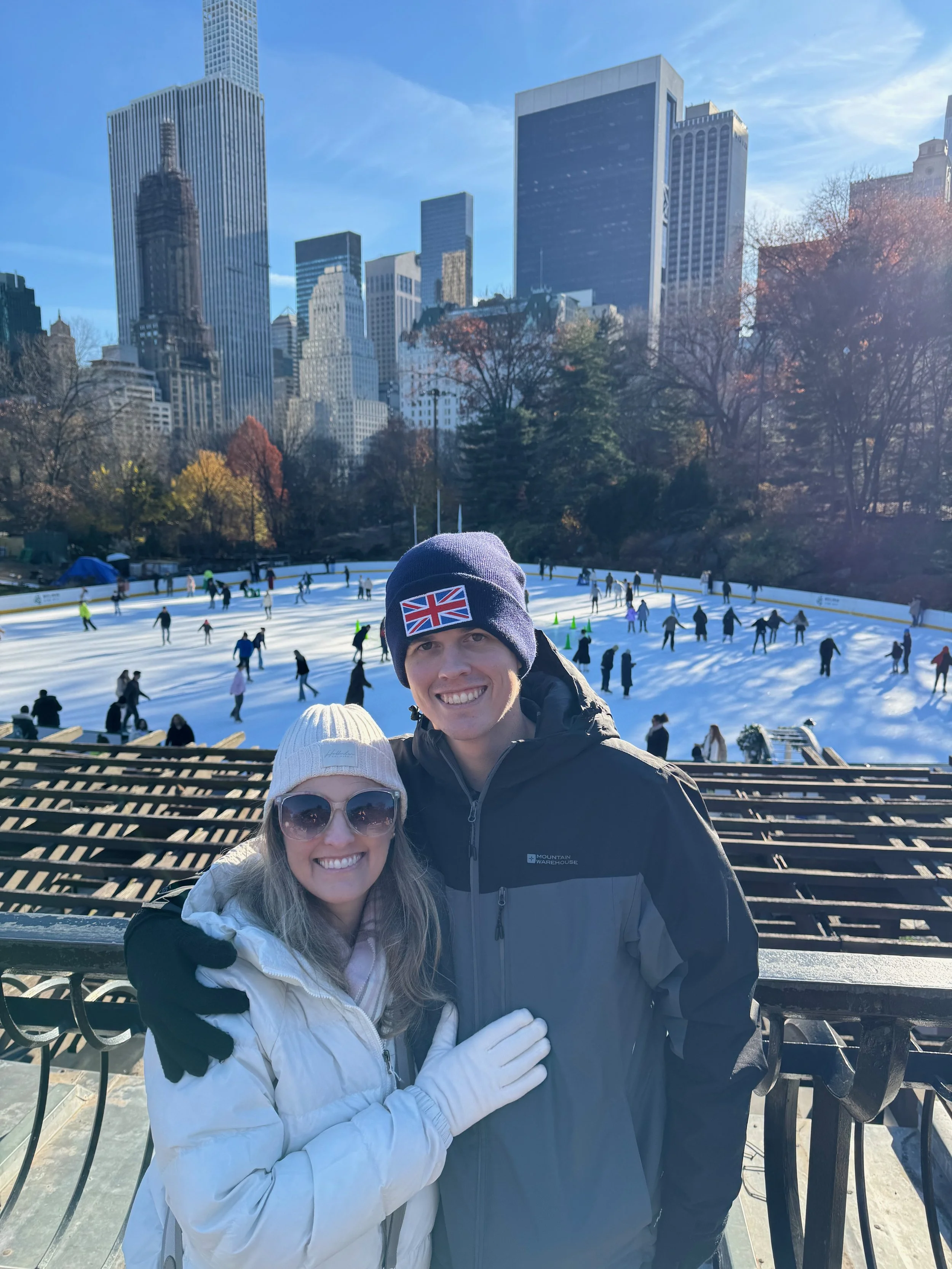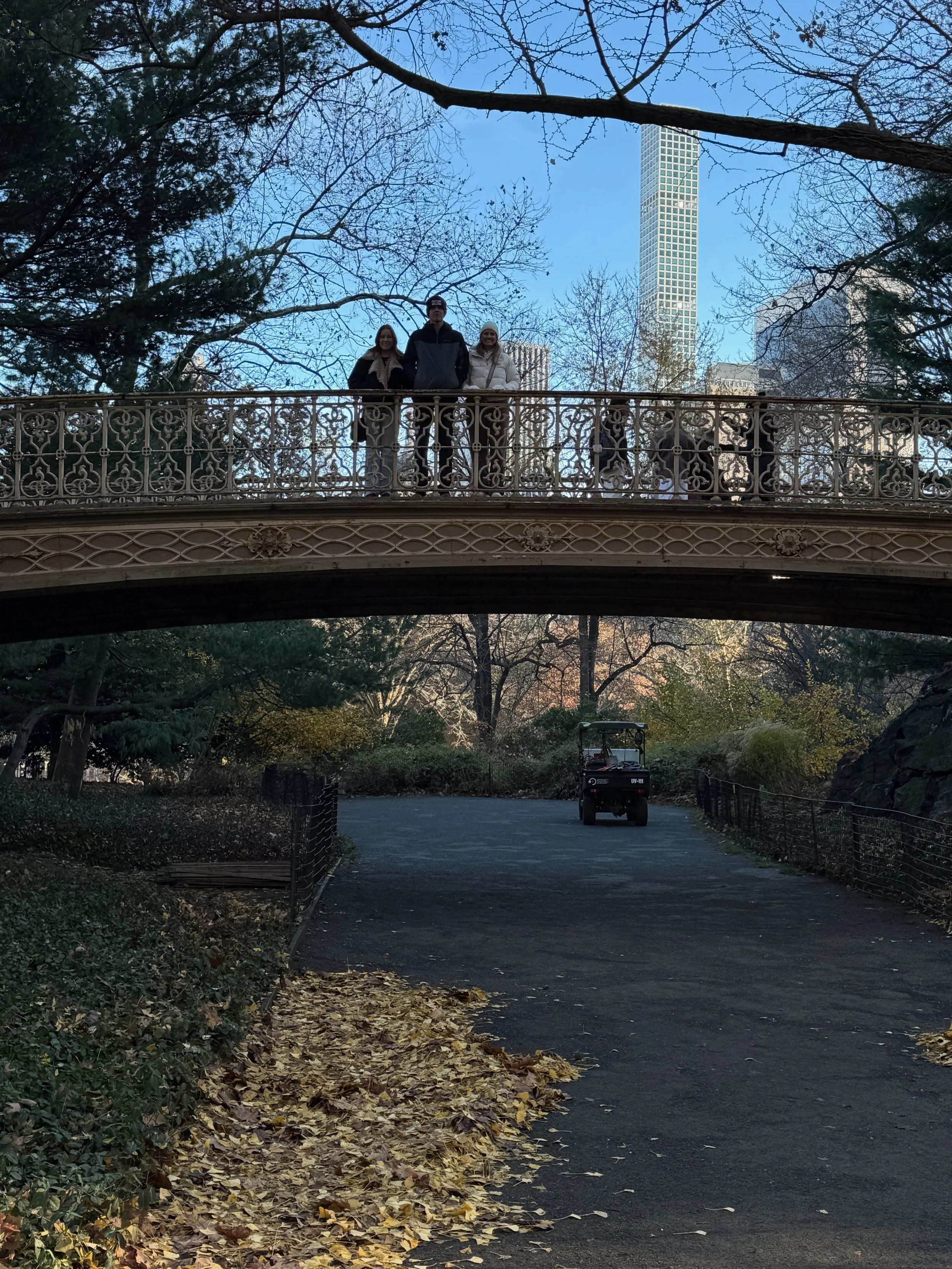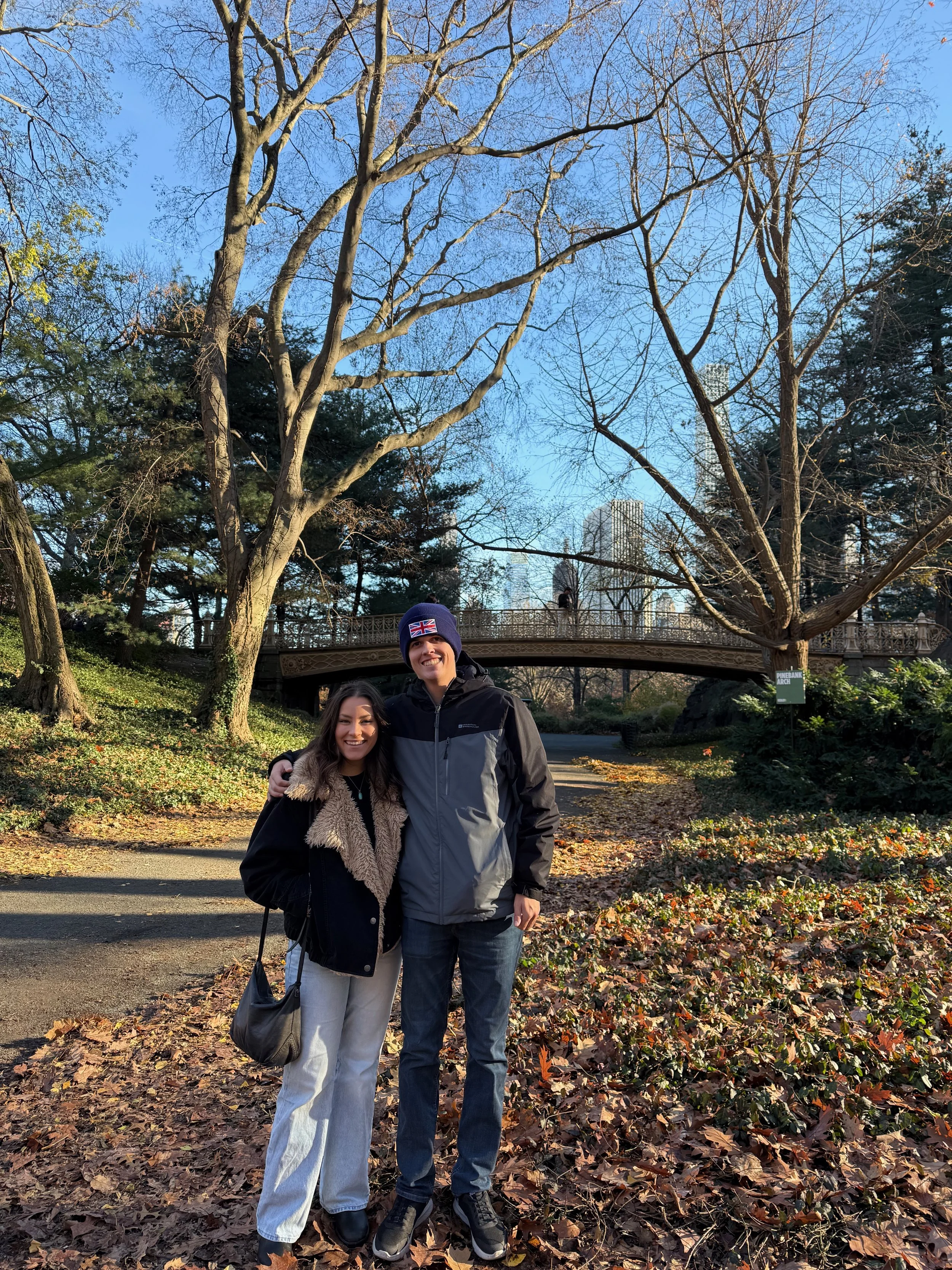 In Central Park standing on Bethesda Terrace with the Bethesda Fountain behind us.