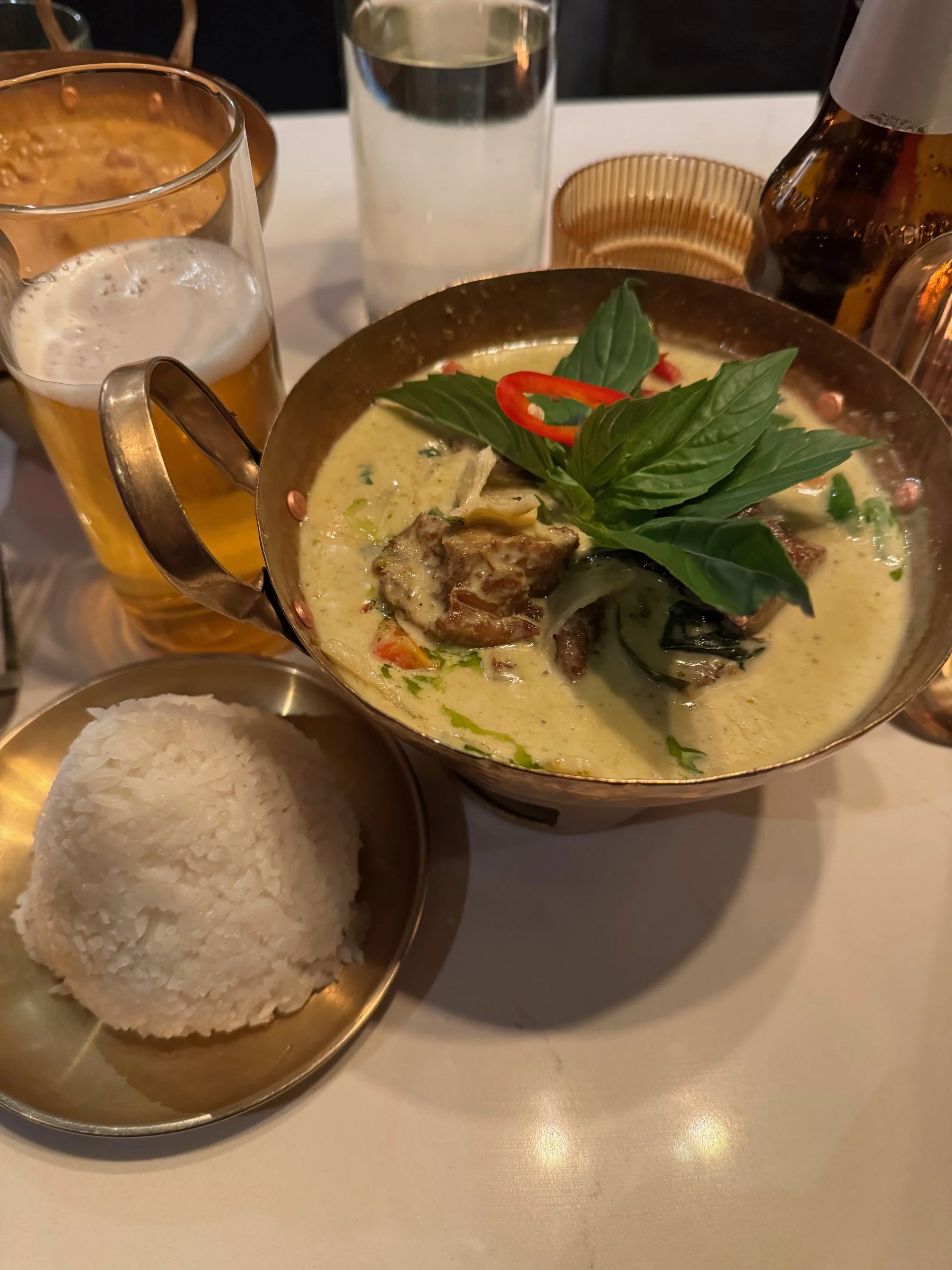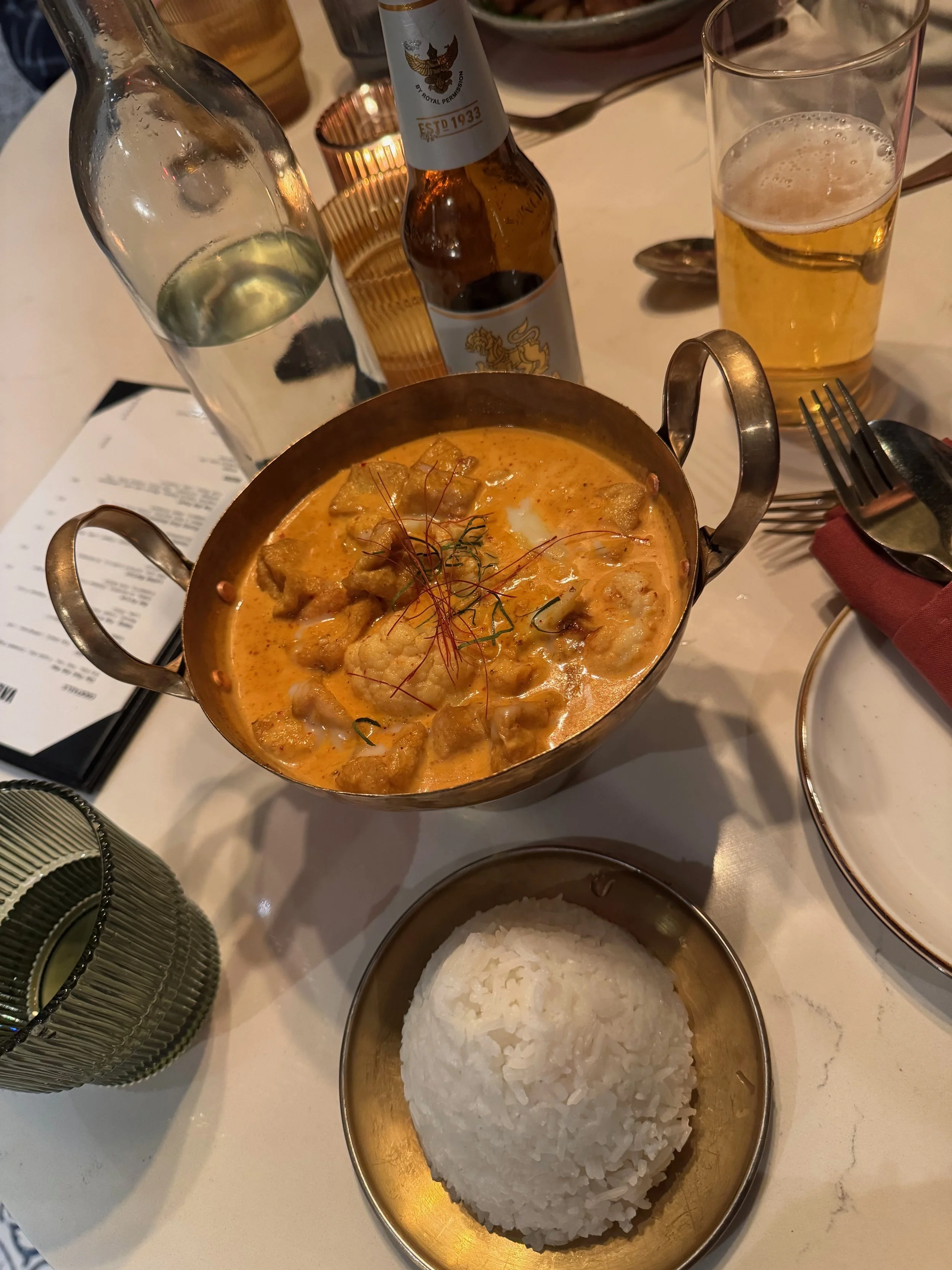 Karina had curry with charred cauliflower, crispy tofu & peanuts.