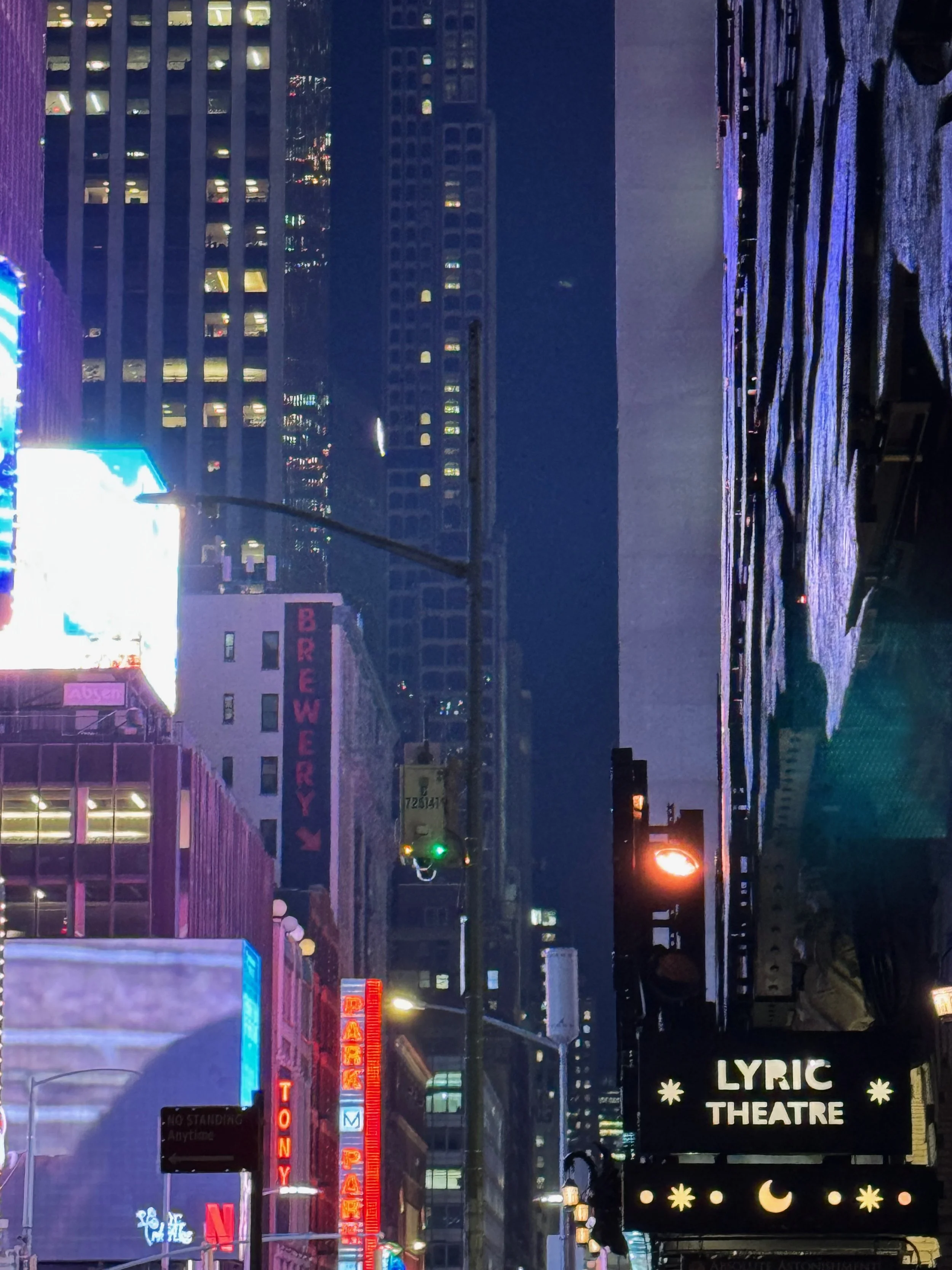 Lyric Theatre is two blocks from Times Square. After the amazing show, we enjoyed the neon lights! (Or are they LED now?) 😂