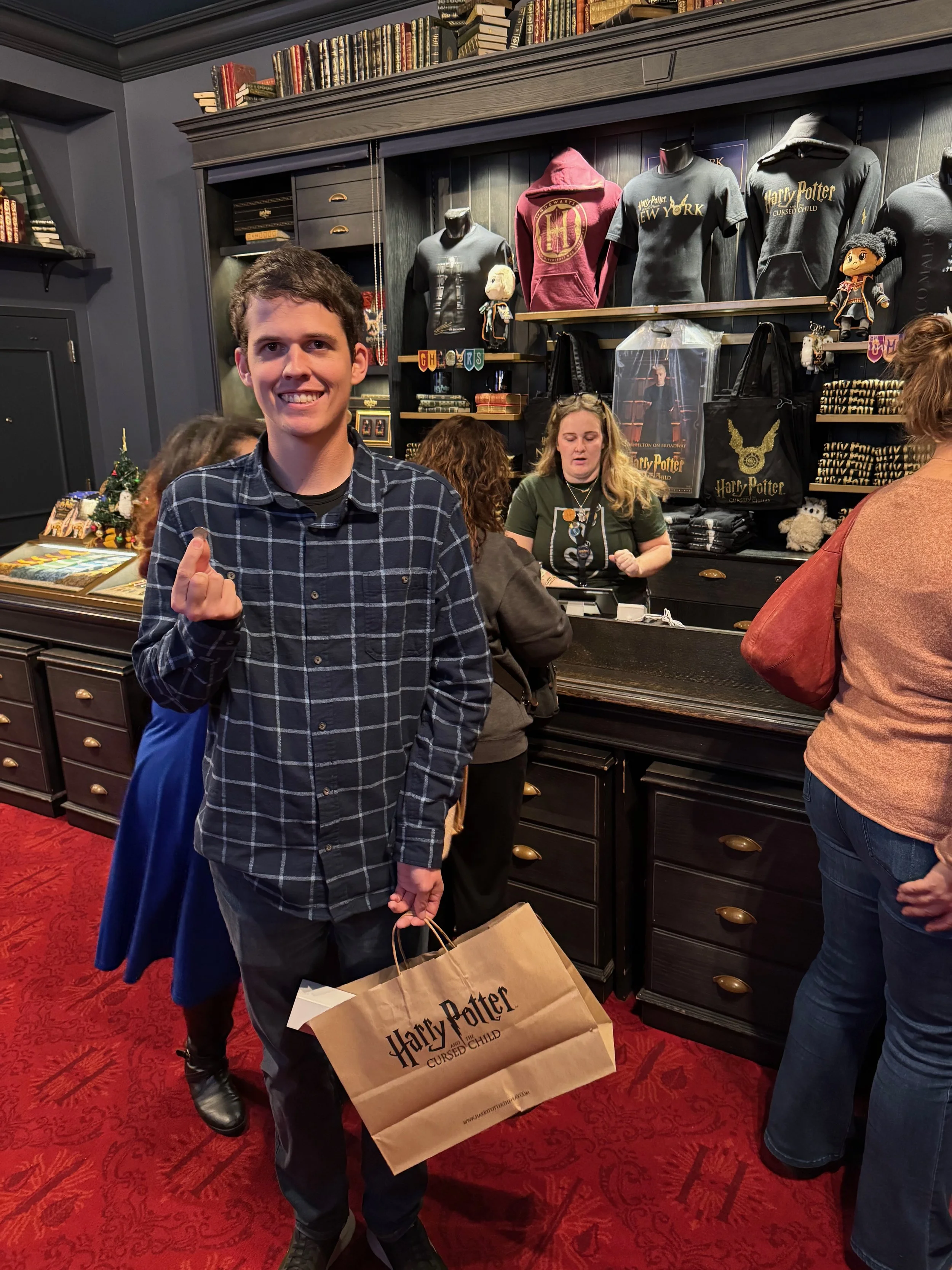Will after purchasing a Scorpius Malfoy wand and finding a dime (#2) on the bespoke Harry Potter carpet.