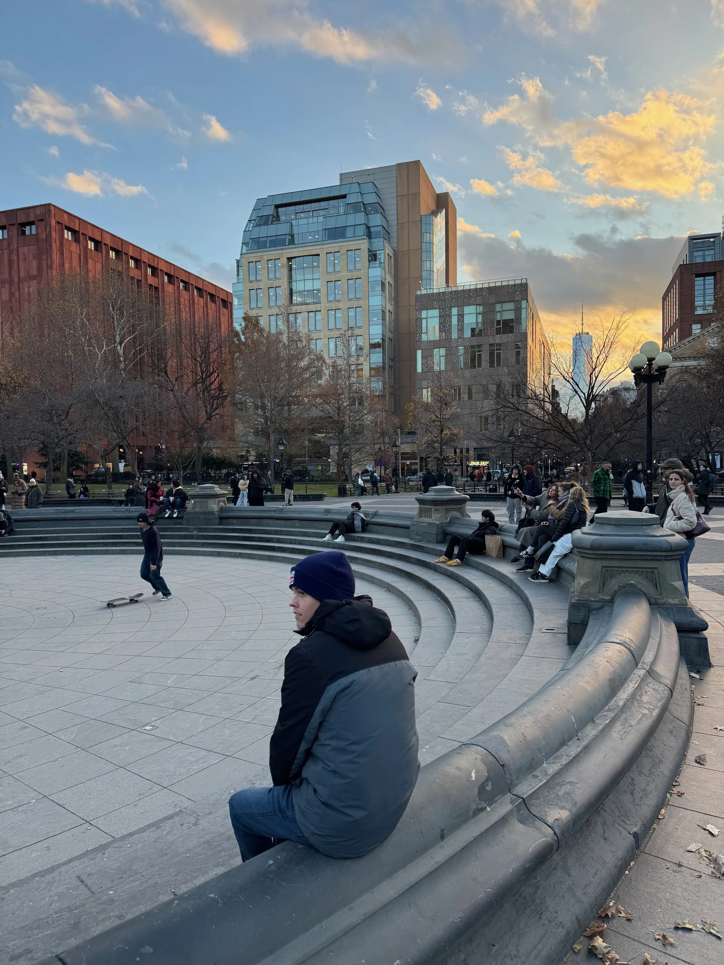 Will watching skateboarders inside the empty Washington Square Fountain.