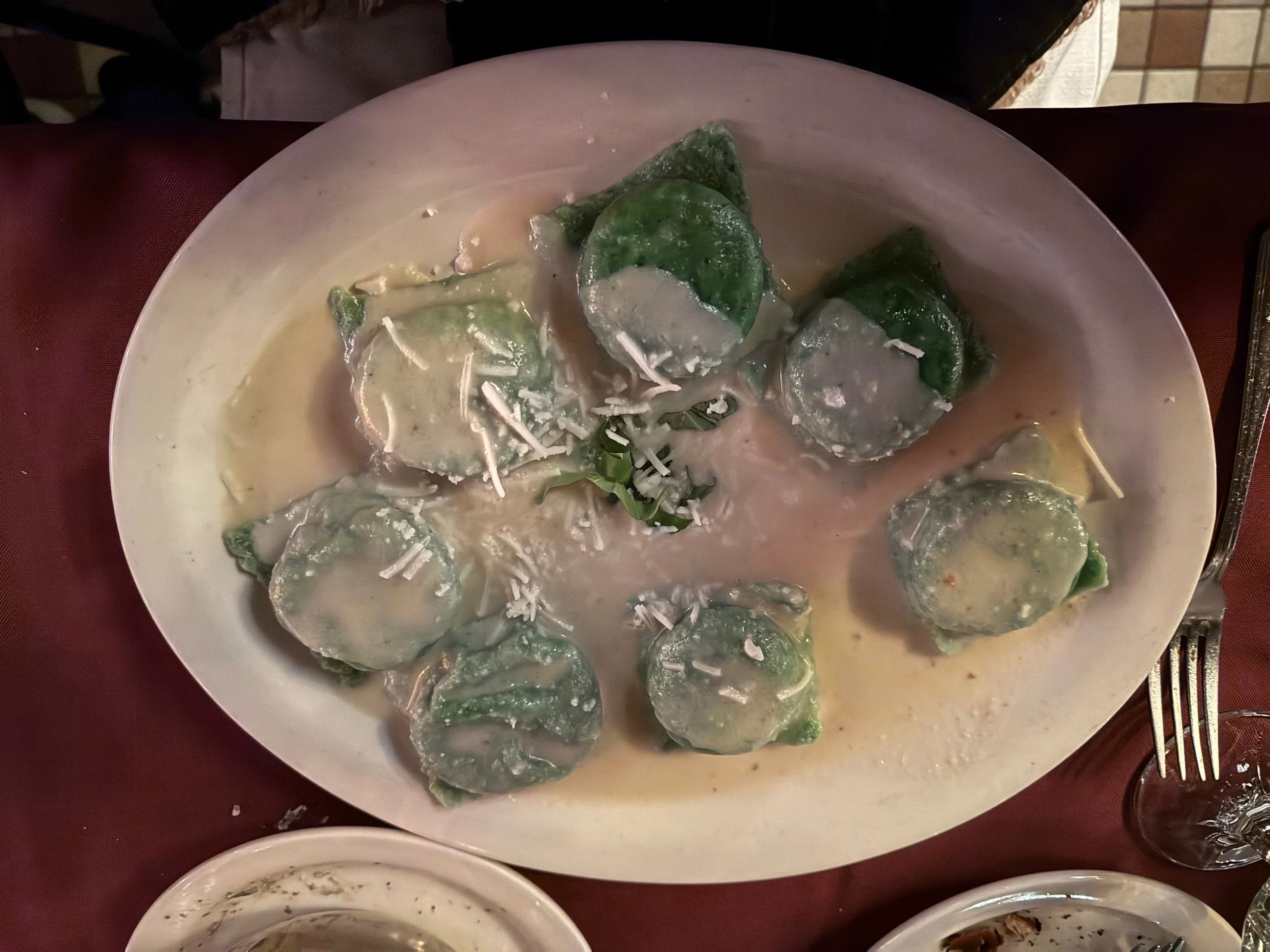Will had homemade lasagna. Karina had this vegan ravioli with fire-roasted tomatoes, spinach & tofu in a vegan alfredo sauce.