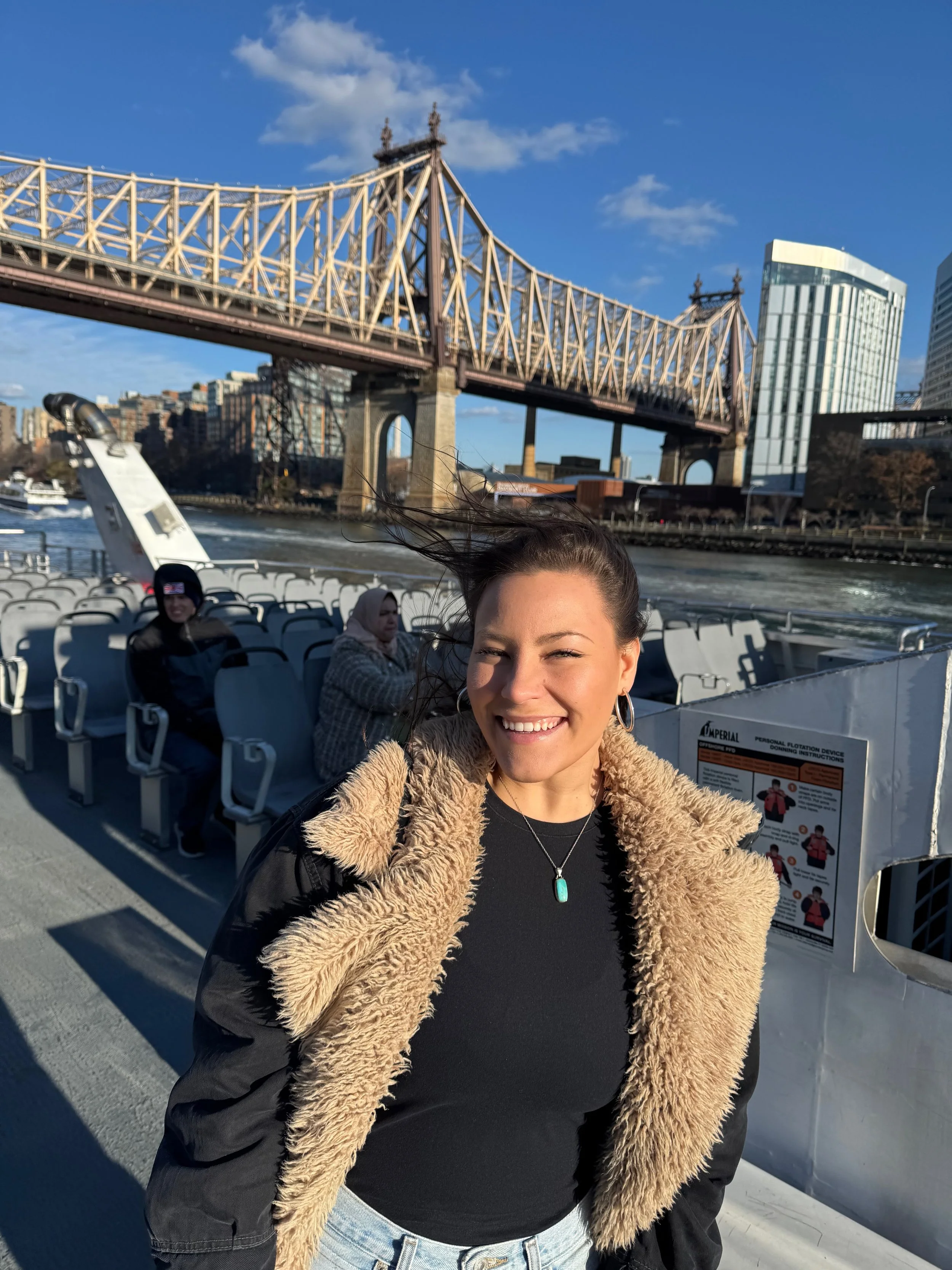 Unfazed by the freezing wind, Karina was the only person on the boat’s deck who was not bundled under layers of clothing.