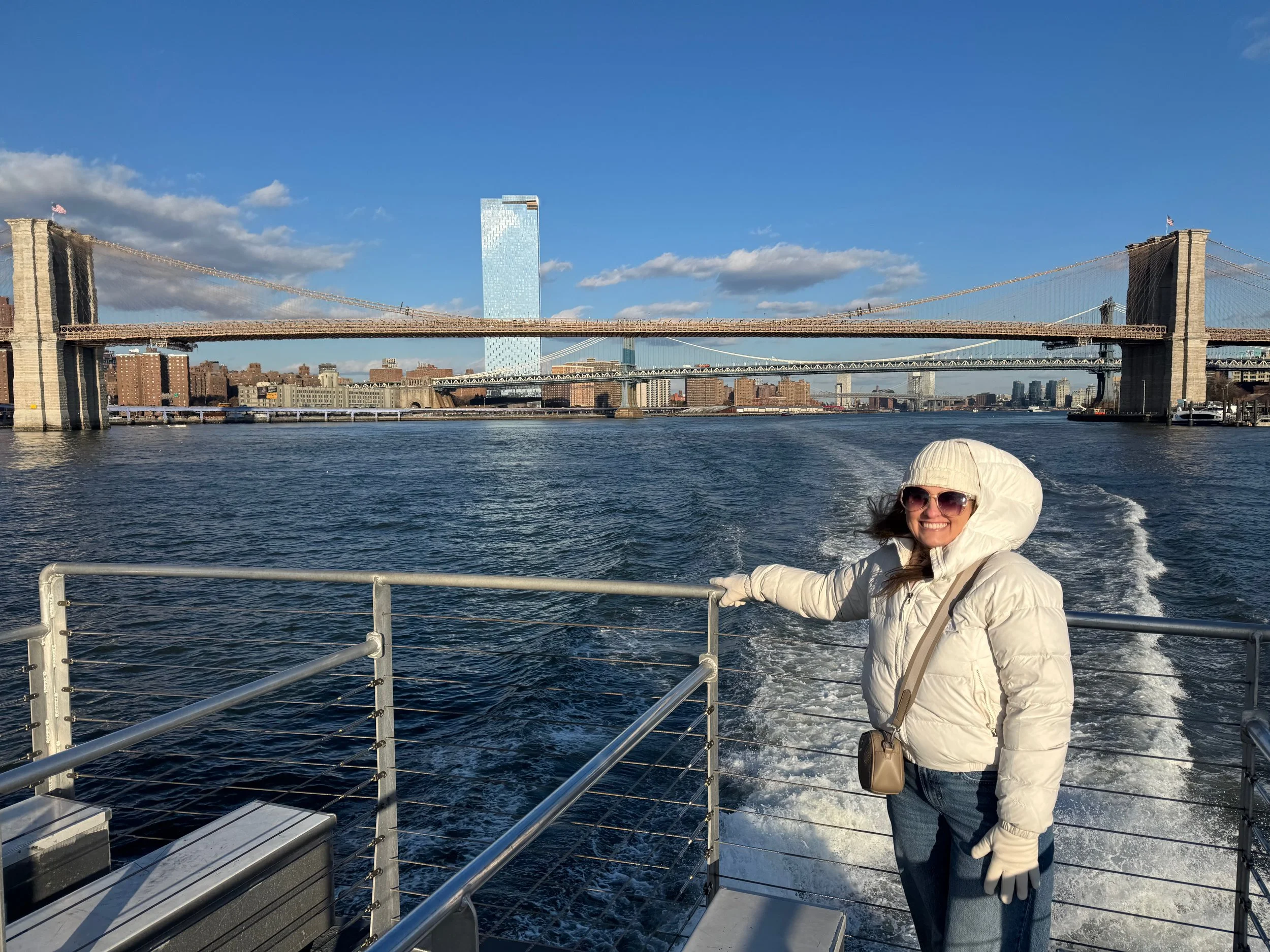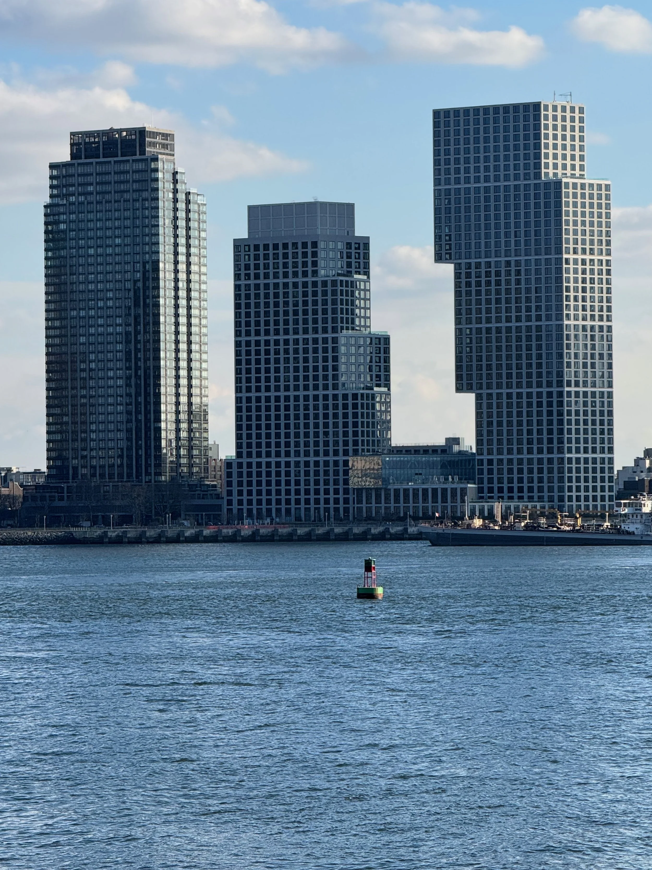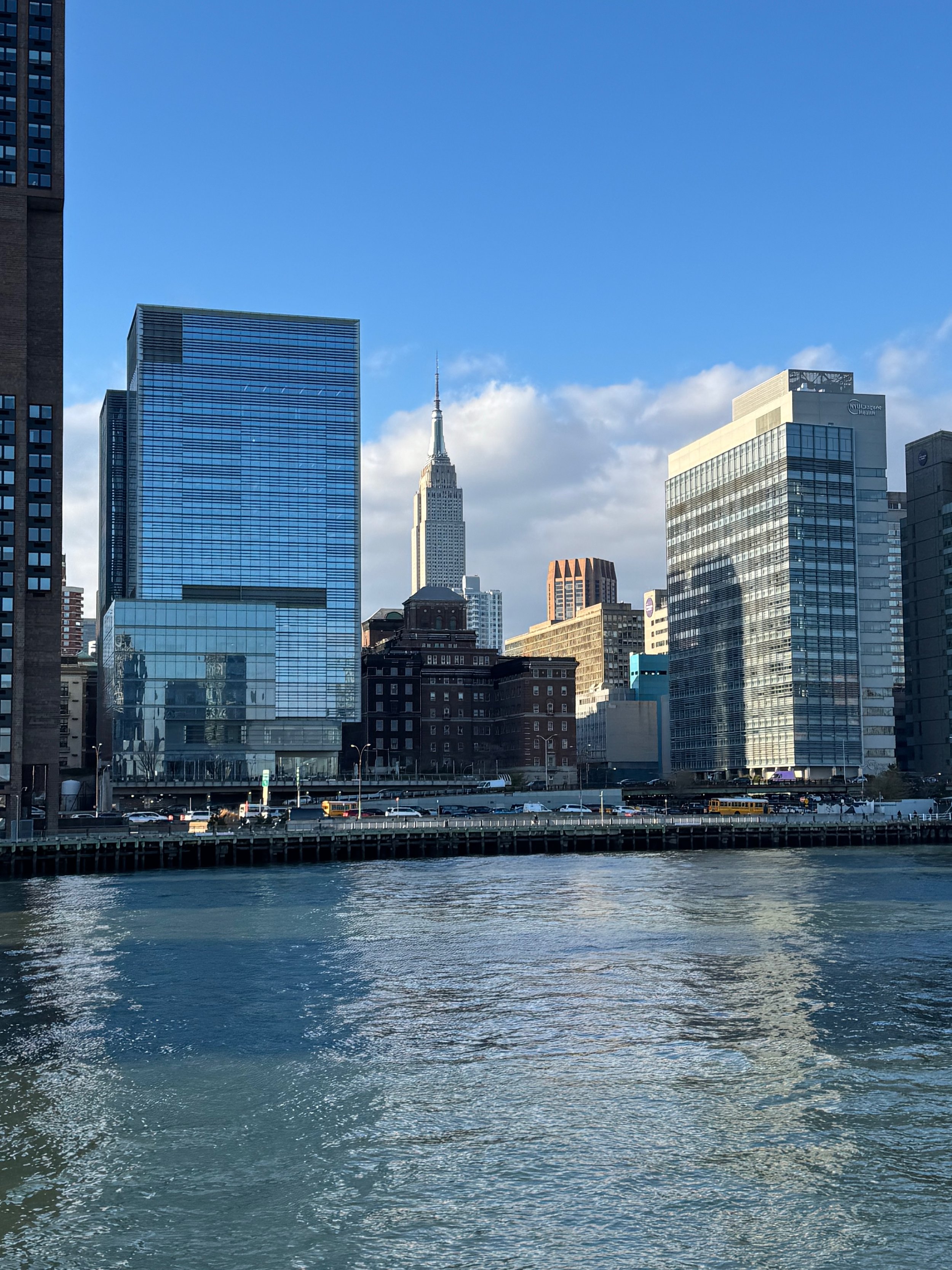 The ferry is a true bargain at only $4.50 to ride from 90th to Lower Manhattan. Here is Karina nearing the south end of Roosevelt Island and the Queensboro Bridge, inspiring me to sing the opening theme to The King of Queens.