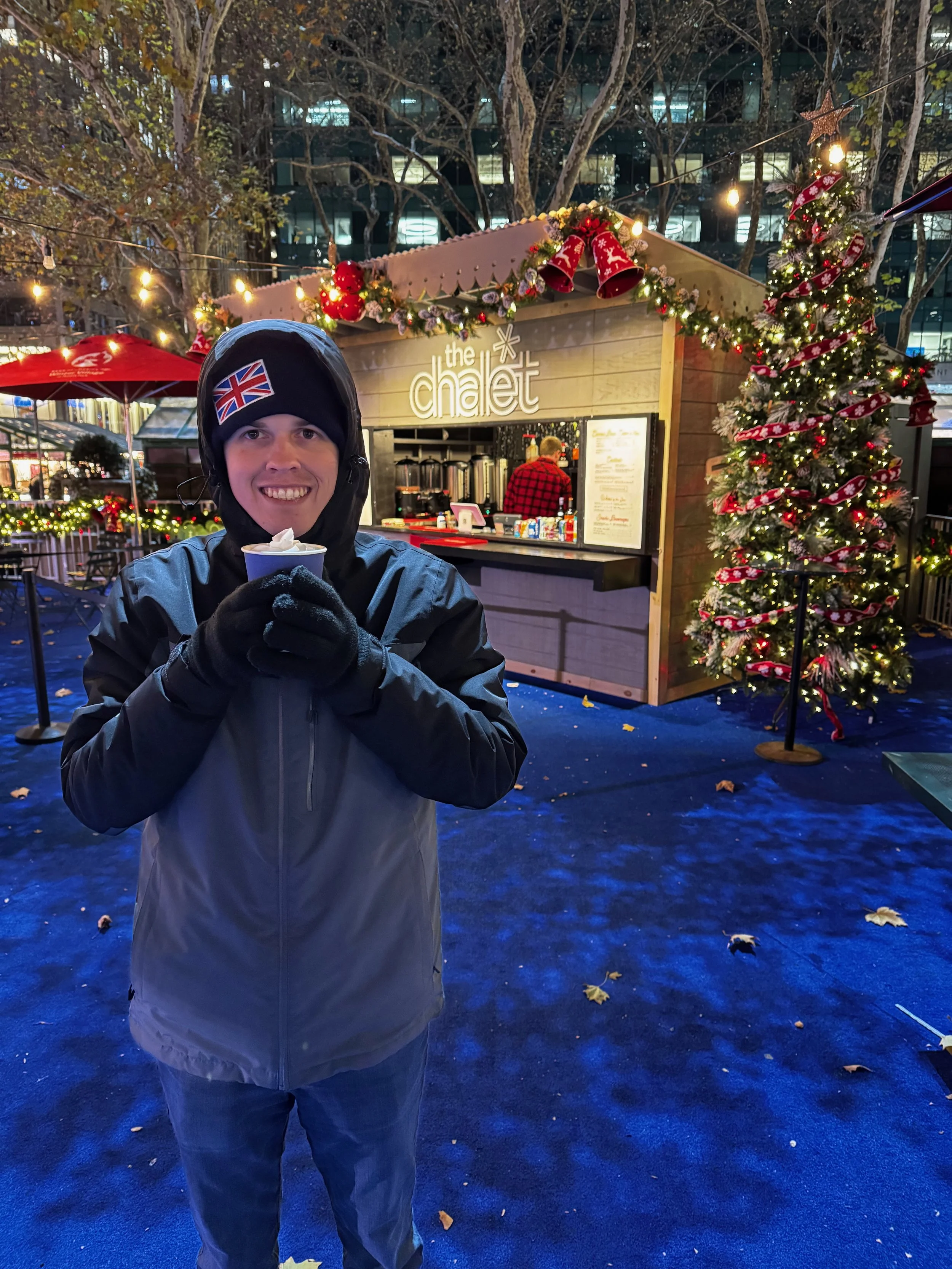 Will enjoying a hot chocolate with Baileys at the Winter Village at Bryant Park.