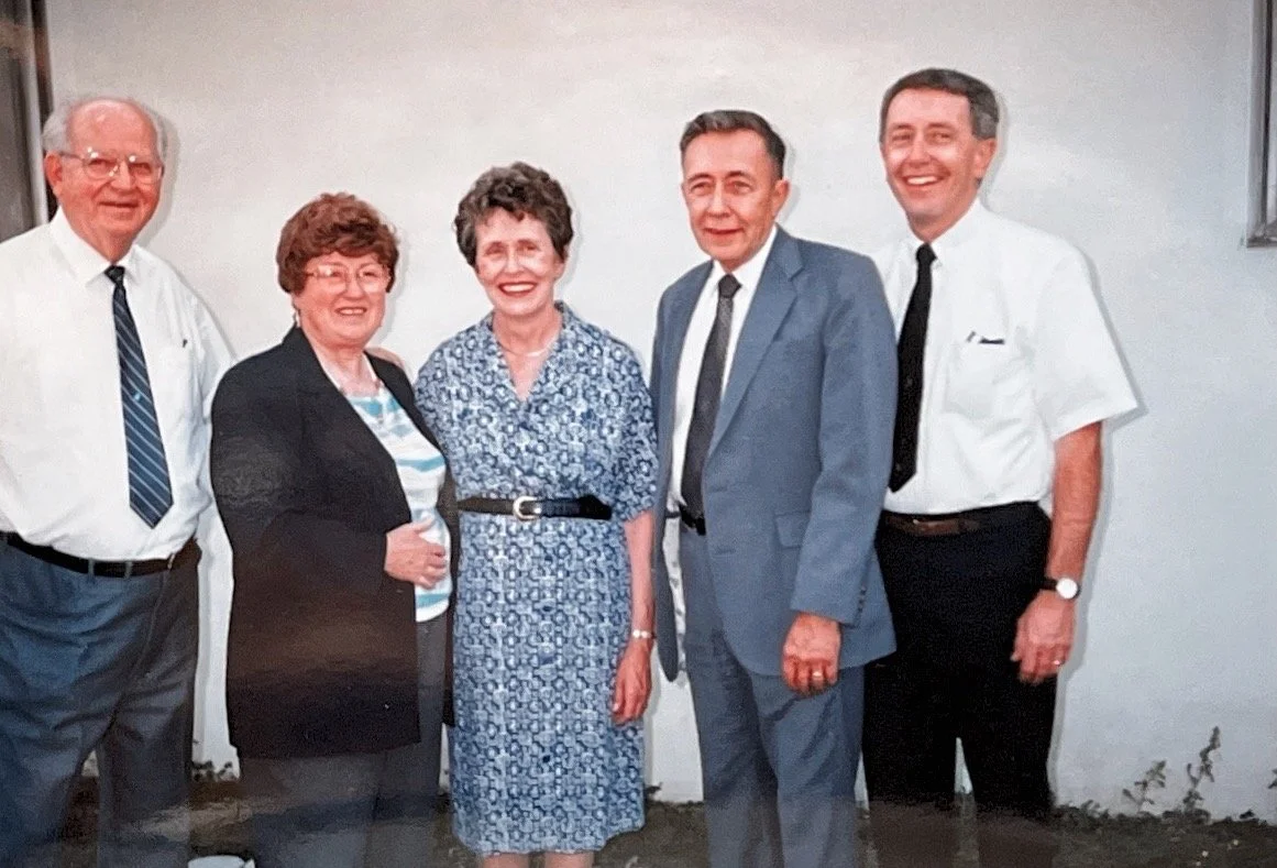 24. George and his wife Dorothy with Jean, Bob, & Jim at Mildred’s celebration of life. George was the youngest child of Adolph’s eldest brother Edward Sr. When Edward’s wife Adelheide died in 1926, George was only 3 years old. Adolph and Mildred had just begun dating at the time, so Mildred helped Pauline (the boy’s grandmother) care for George and his 6-year-old brother “Johnny.” As a result, George maintained an affinity for Mildred as a surrogate mother throughout his lifetime.