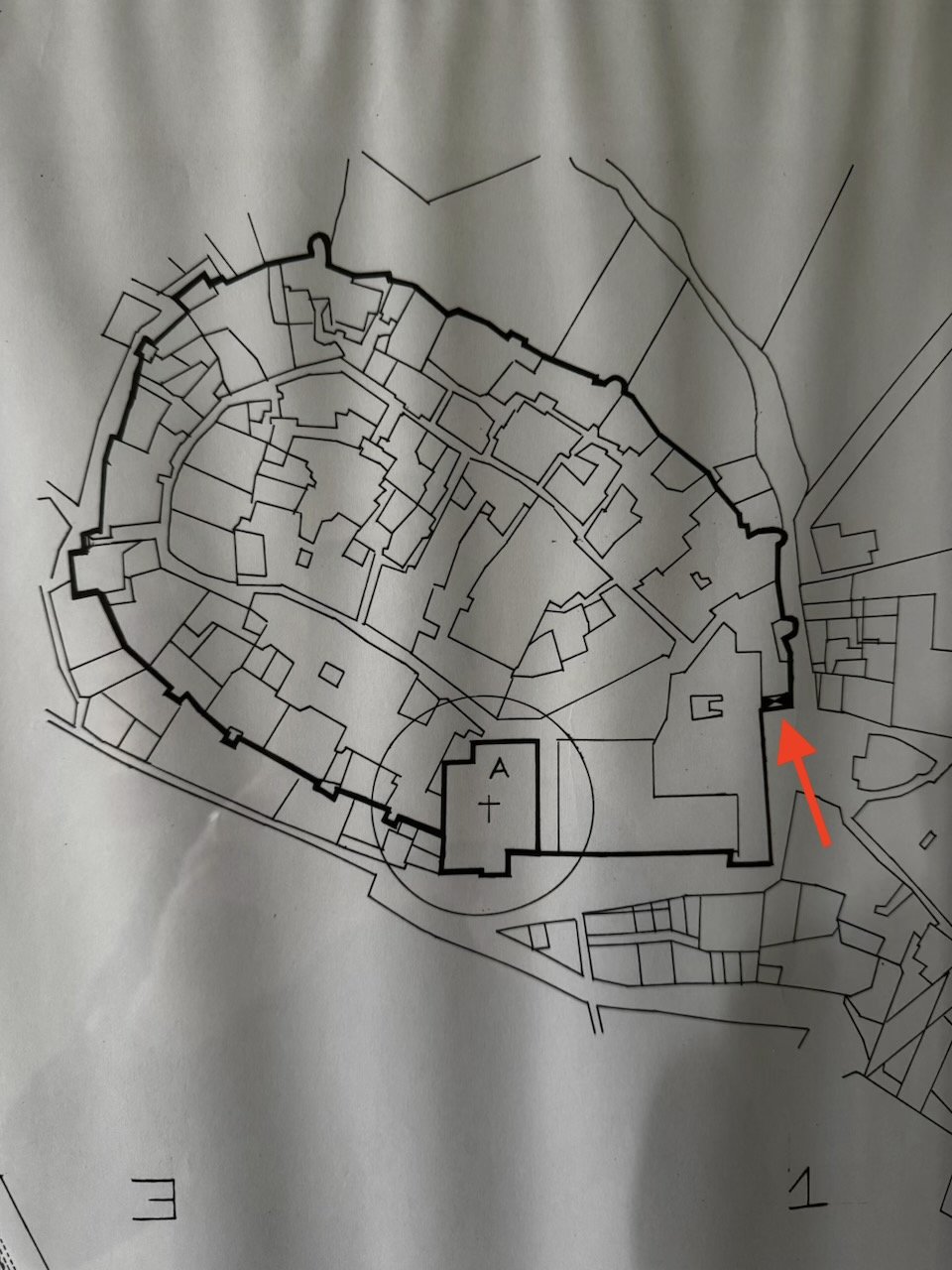 The red arrow on the map of the medieval city walls marks this, the fortification’s only remaining gate.