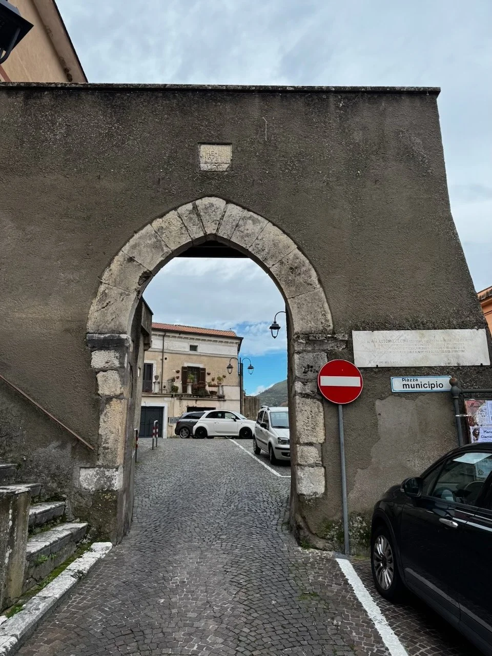 The Aquilonian ruins are on the hilltop to right. Later, in the early medieval period, a monastic cell dedicated to San Vittore (St Victor) was established on this lower hilltop. By the tenth century, repeated Saracen raids promoted the cell’s fortification, and it gradually evolved into a defensive stronghold—shaping the medieval street plan that remains. San Vittore defenses were first documented in a 1057 charter.