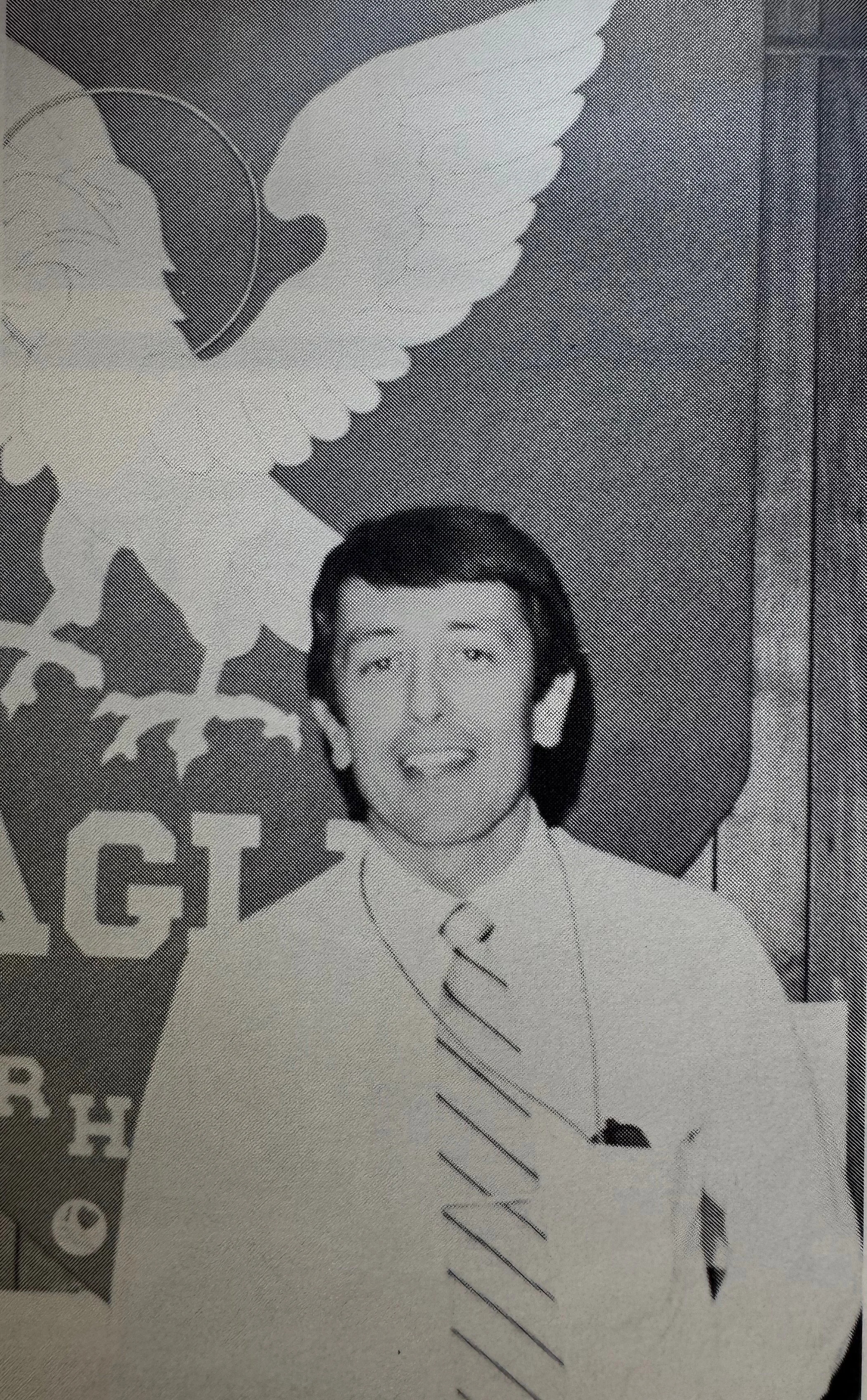 Jim hard at work in the principal’s office with at banner featuring the RHLS Eagles emblem proudly displayed behind his desk. The high-soaring eagle is the most common emblem of the Apostle John, especially in his role as the author of the fourth Gospel. It represents his ability to rise to great theological heights and the divine perspective of his writings—a goal the school wished to emulate.