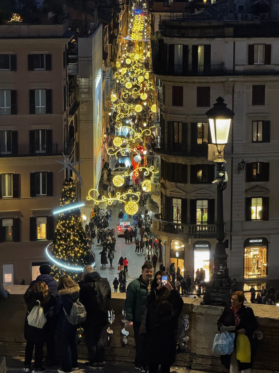 Christmas Decorations on the Steps and down Via delle Carrozze.