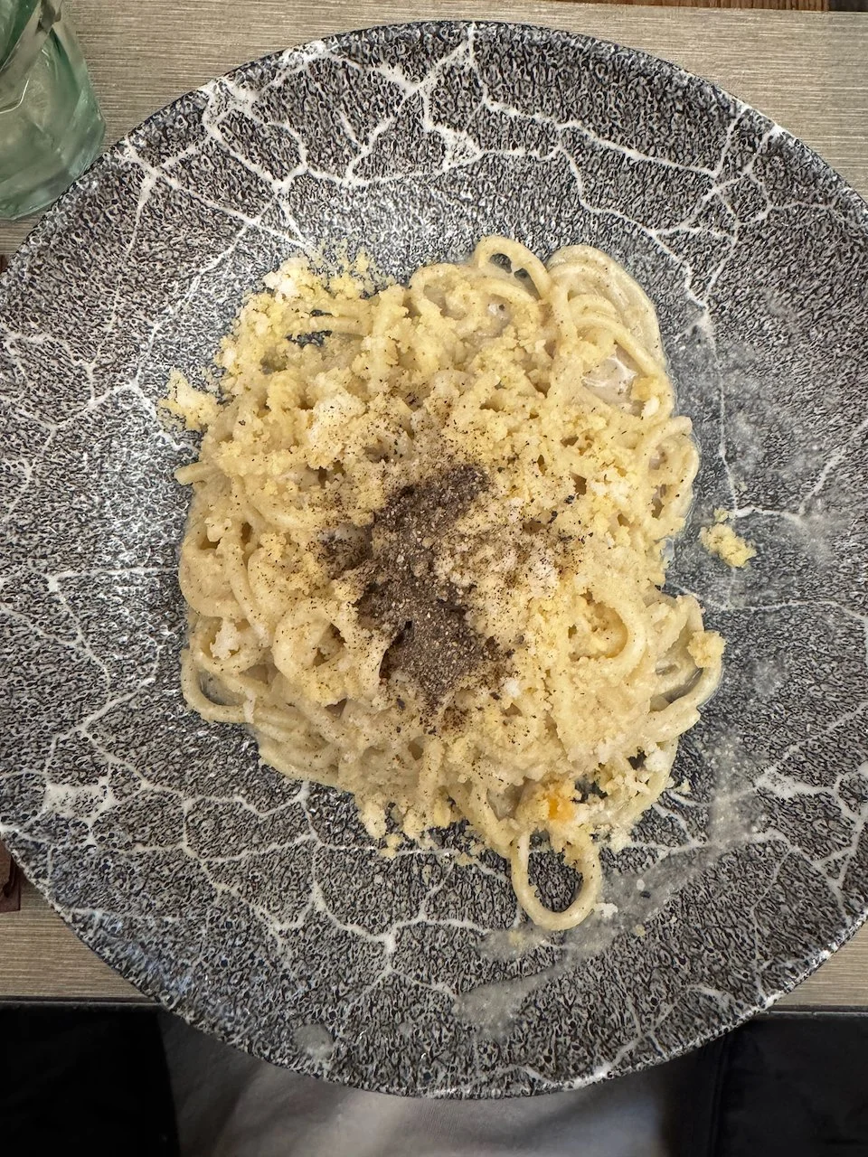 Across the street we ate at Rifugio Romano. We were both surprised to learn it was a popular all-vegan restaurant. My cacio e pepe was delicious! Because we were in Italy, after dinner we of course had an espresso to carry us through the remainder of the day.