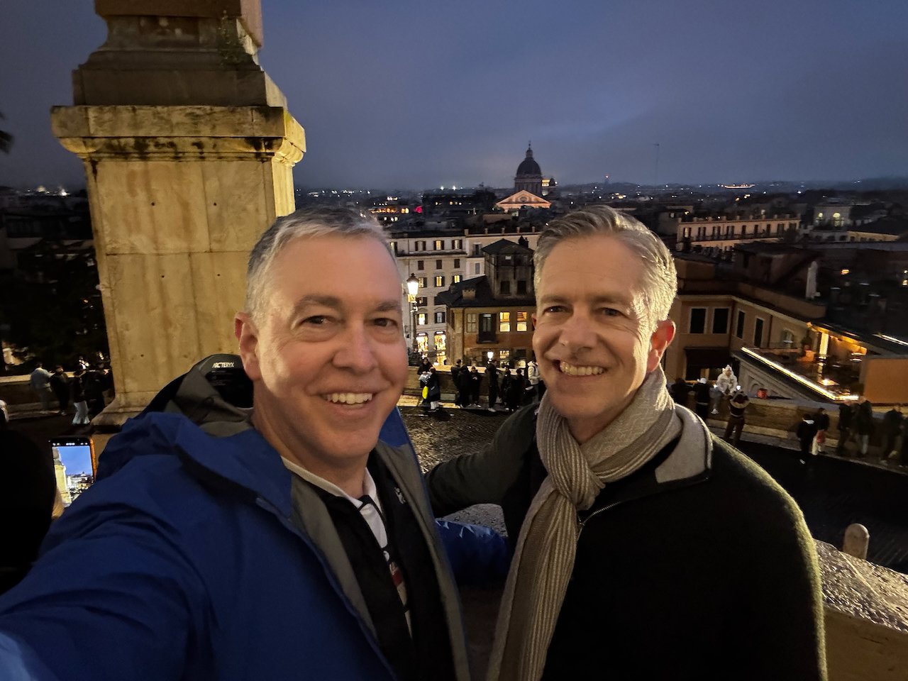 On the portico of Trinità dei Monti looking down the Spanish Steps.