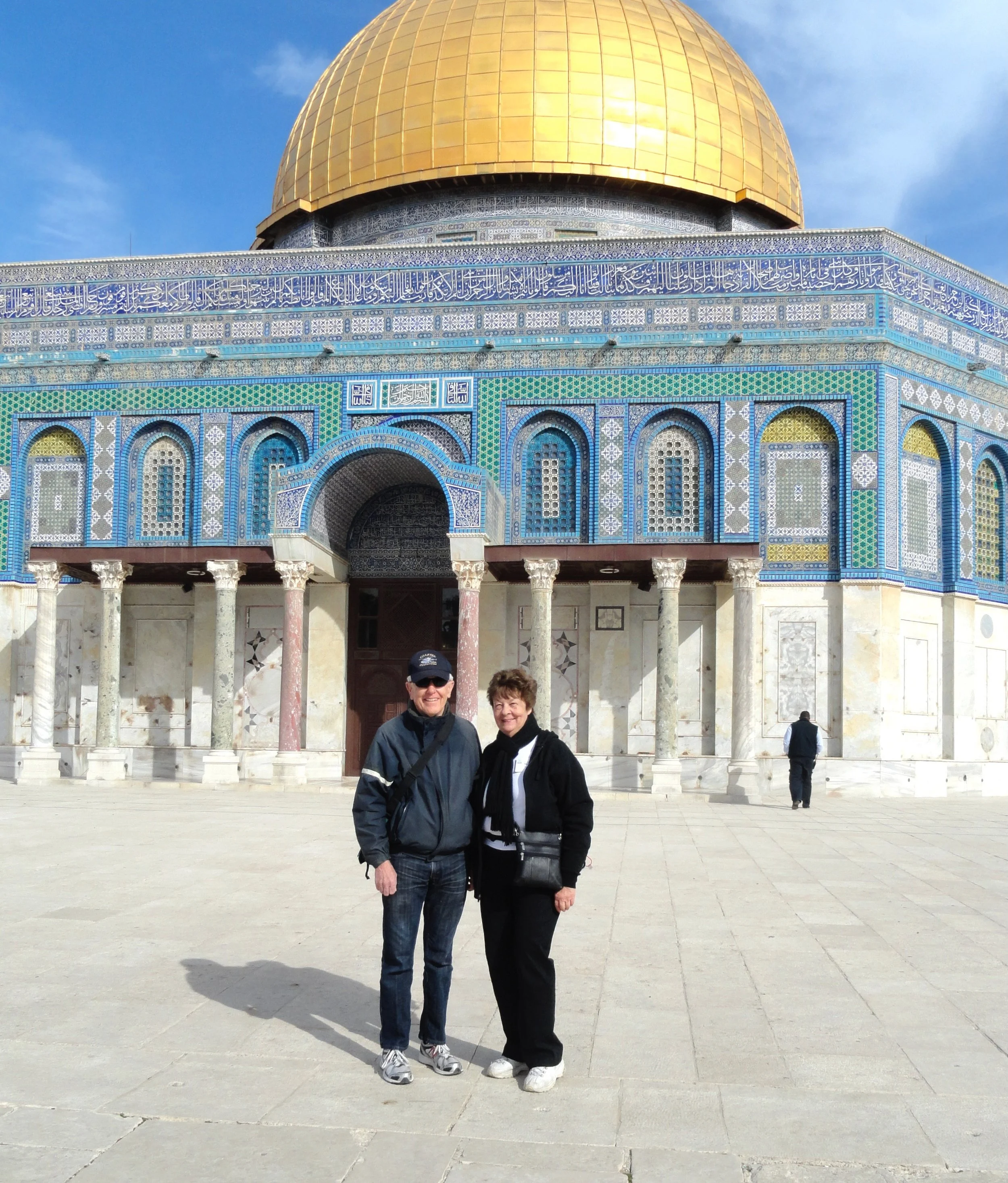 33. Jim and Ruth at the Dome of the Rock, the octagonal Islamic shrine at the center of the Al-Aqsa mosque compound on the Temple Mount in the Old City of Jerusalem.