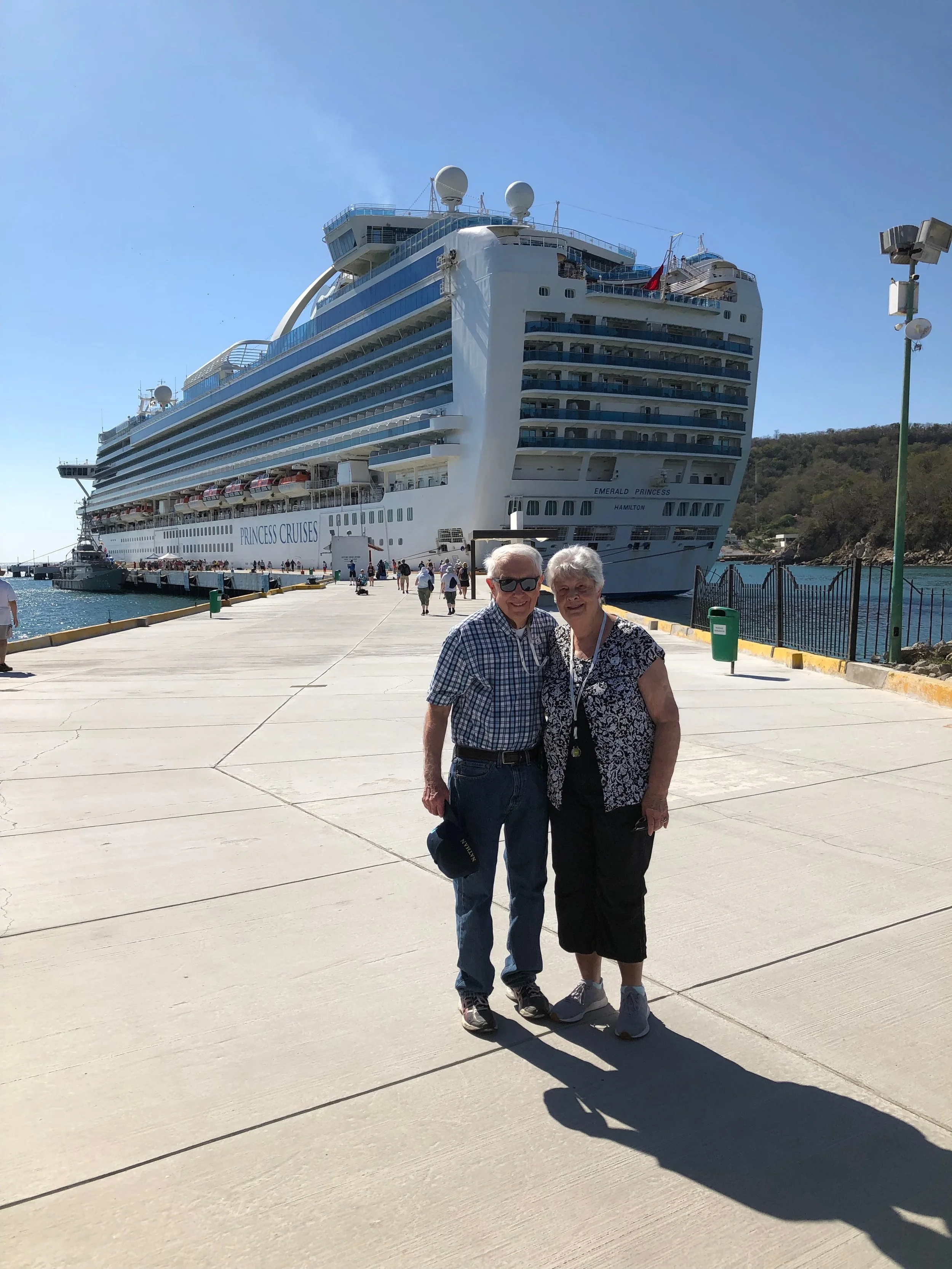 69. Ruth and Jim aboard their cruise ship with the Centennial Bridge spanning the Panama Canal behind them on January 28, 2023.