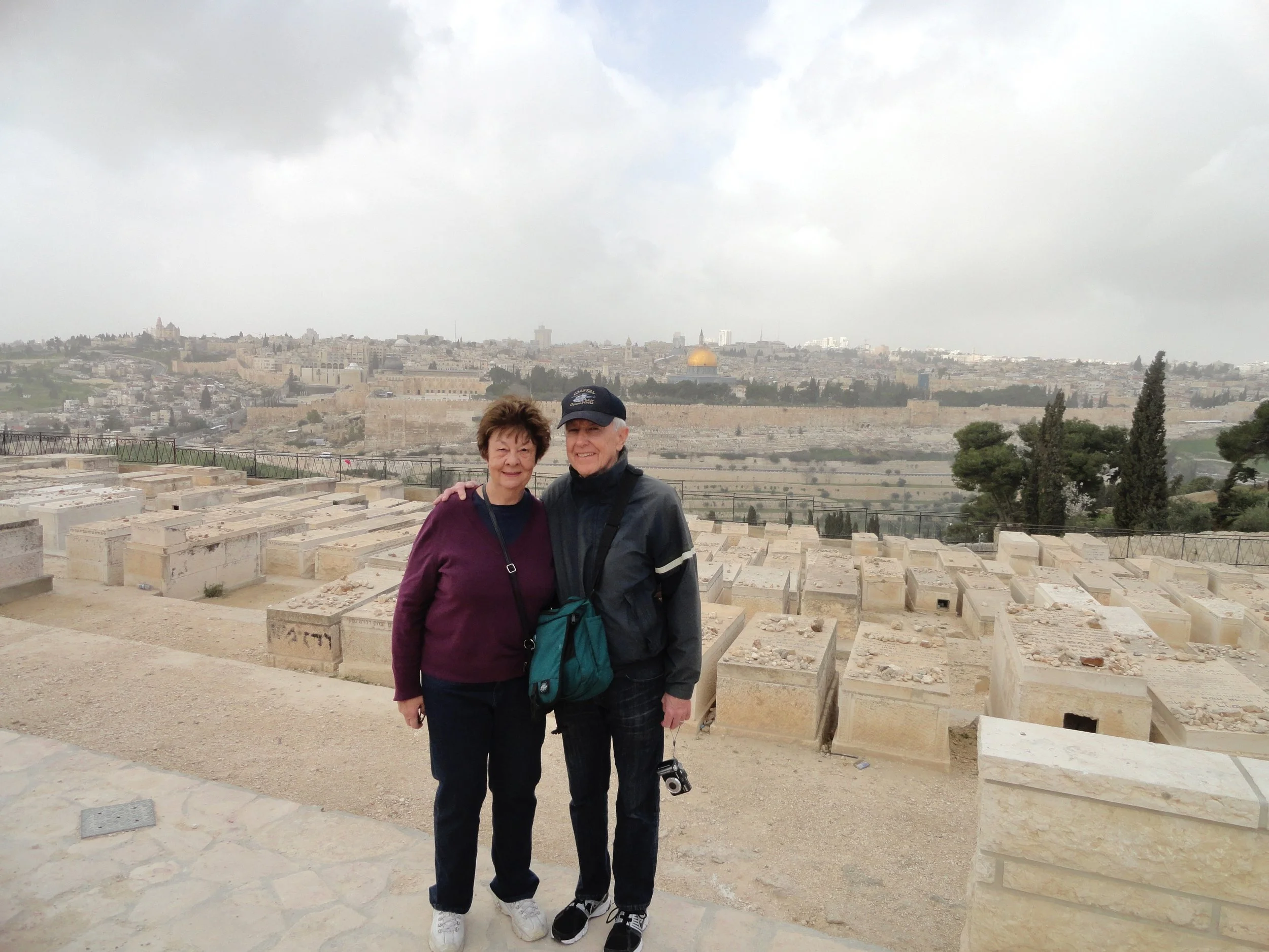 29. In February 2013, Ruth and Jim traveled to Israel and Egypt. Here they are on the Mount of Olives overlooking Jerusalem.