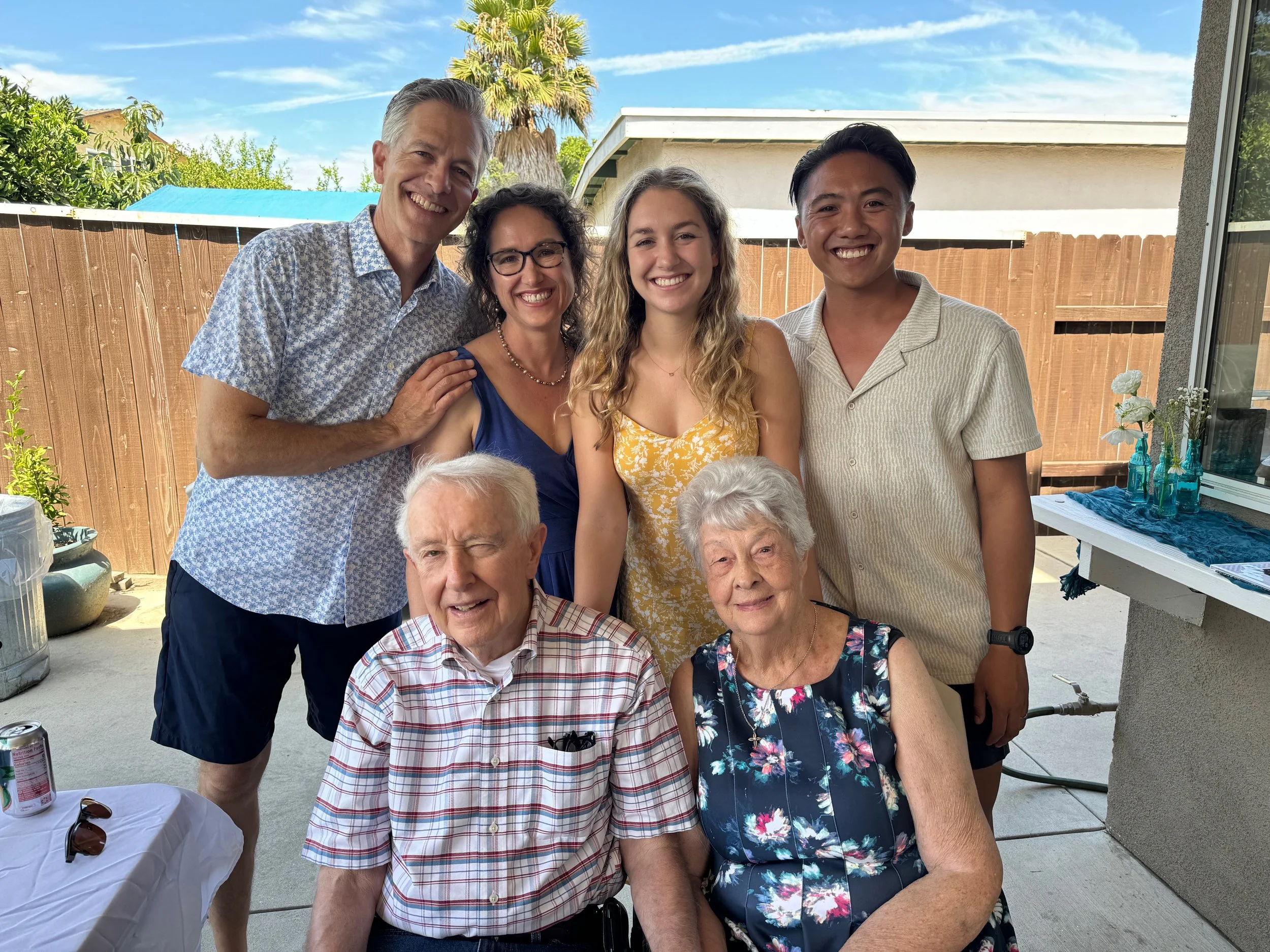 73. Jim and Ruth and their extended family at the celebration of their 60th wedding anniversary on Sunday, August 4, 2024, held at Debbie’s house at 1433 Gracia St, Camarillo, CA.