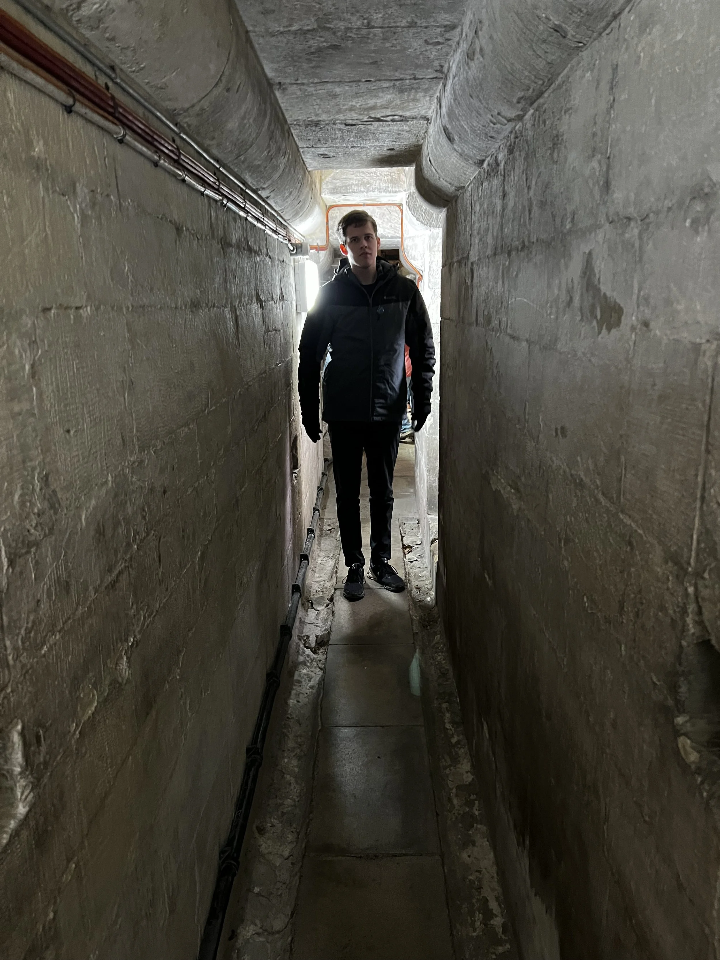 The narrow walkway from the Triforium to the stone spiral stairway to the Clerestory and up.