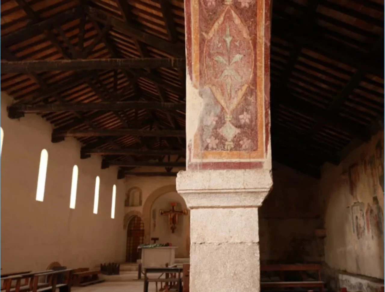 The left (south) wall of the nave included the figures of St Peter and St Nicholas. An Orsini family crest dated 1360 means these frescos likely predate the application of the crest, speaking to the rich history of the church.