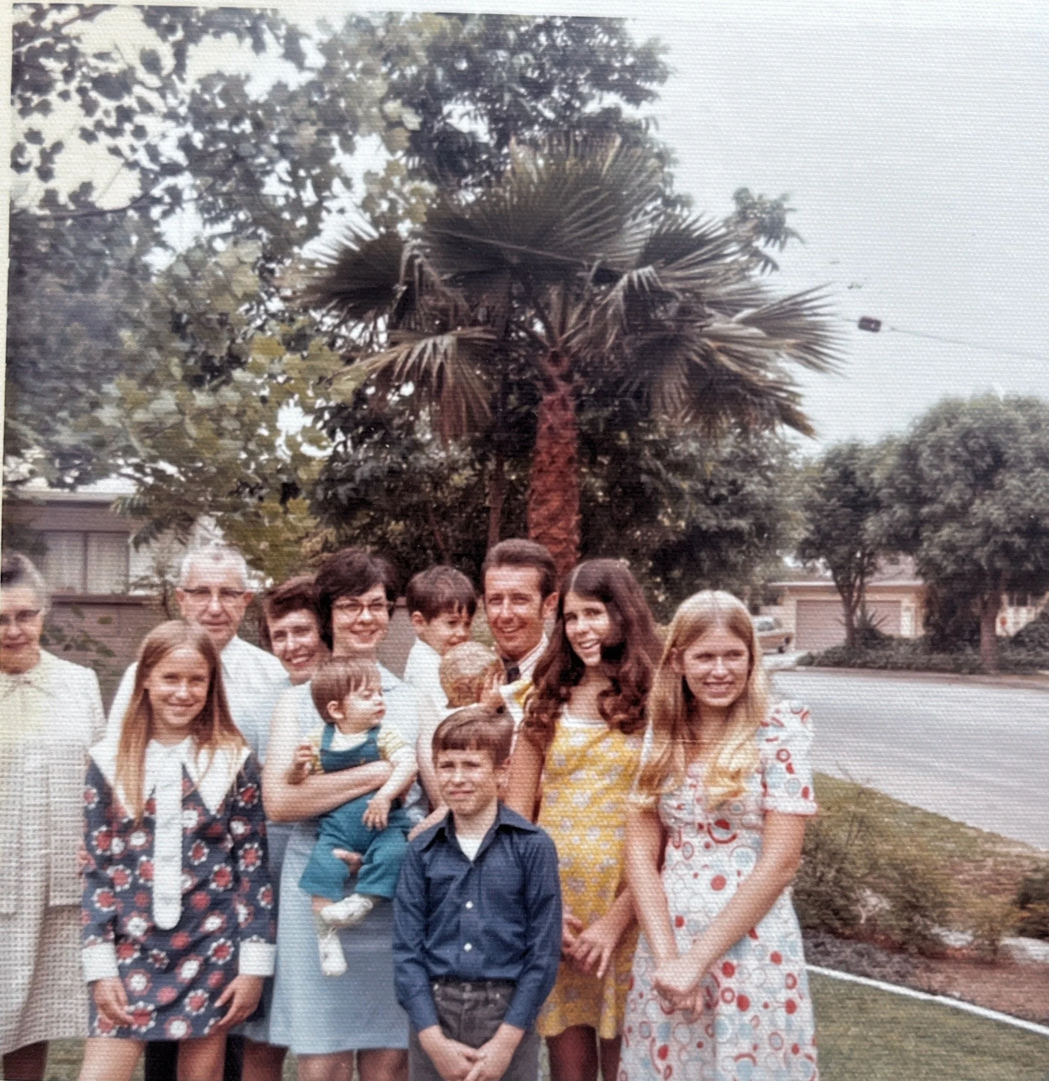 43. After three boys, on the afternoon of May 1, 1978, Jim and Ruth finally welcomed a girl, Deborah Ruth, into the world at Children’s Hospital of Orange County (CHOC), in Orange, CA. This photo was taken on the front lawn of the Tustin house, perhaps on the day of her baptism at Red Hill Lutheran Church. The fencing behind them was an attempt to keep the boys and the neighbor kids from cutting between the Neumann and Gill houses. The Gills replaced the Thompsons after they moved to Nipomo, CA. Undoubtedly, the blockade was paid little heed!